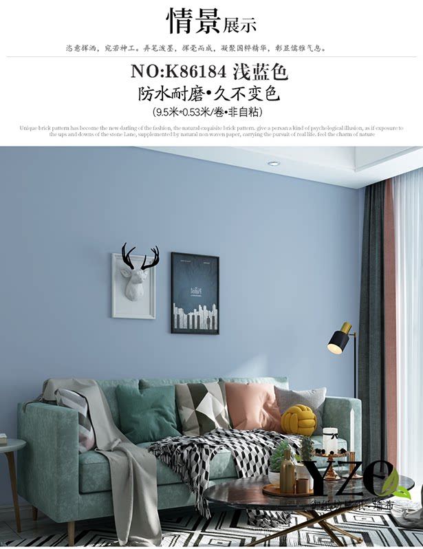 Современные синие обои из ПВХ, широкая цветовая палитра, скандинавский стиль