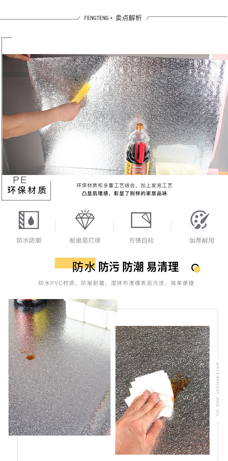 Самоклеющаяся водонепроницаемая термостойкая наклейка, плита, обои
