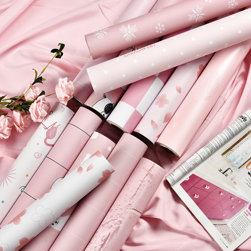 Розовые обои Интернет знаменитости обои девчачье сердце спальня теплая клетчатая бумага макет общежития декоративная стена