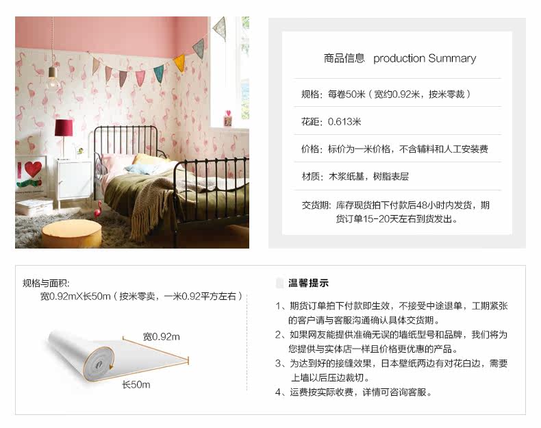 [He Paper House] Северная ветряная розовая пожарная птица спальня Японские импортные обои продаются в рисовом ноль