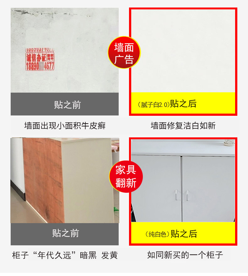 Белые обои, белая мебель, наклейка, увеличенная толщина