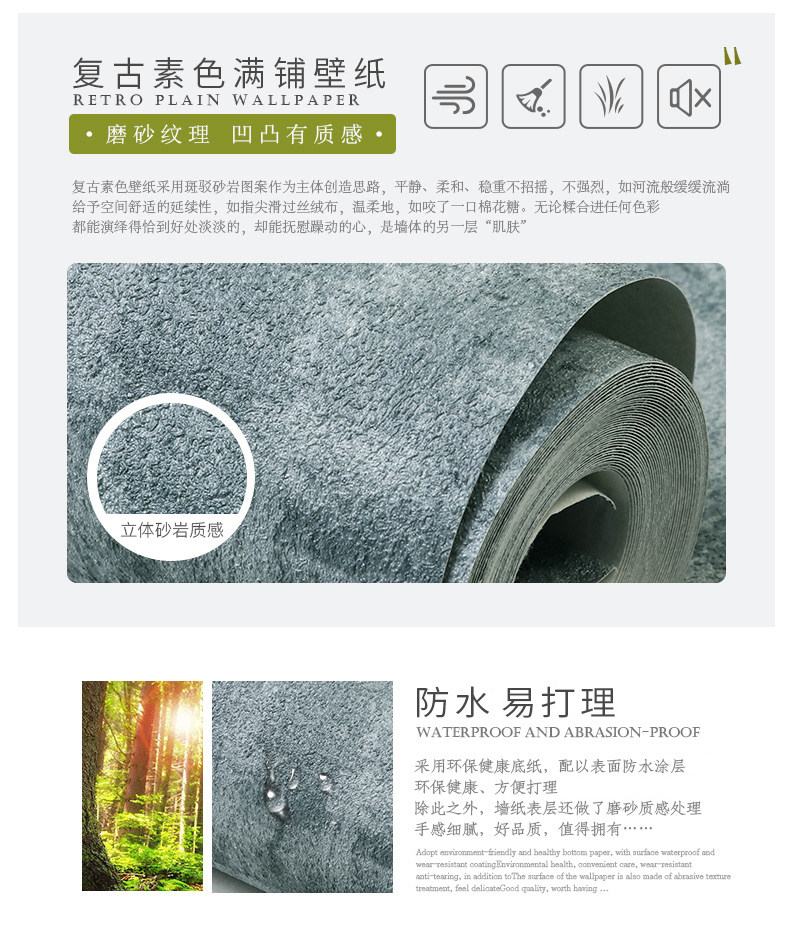 Ретро промышленного стиля обои с твердым цветом цементного пепла