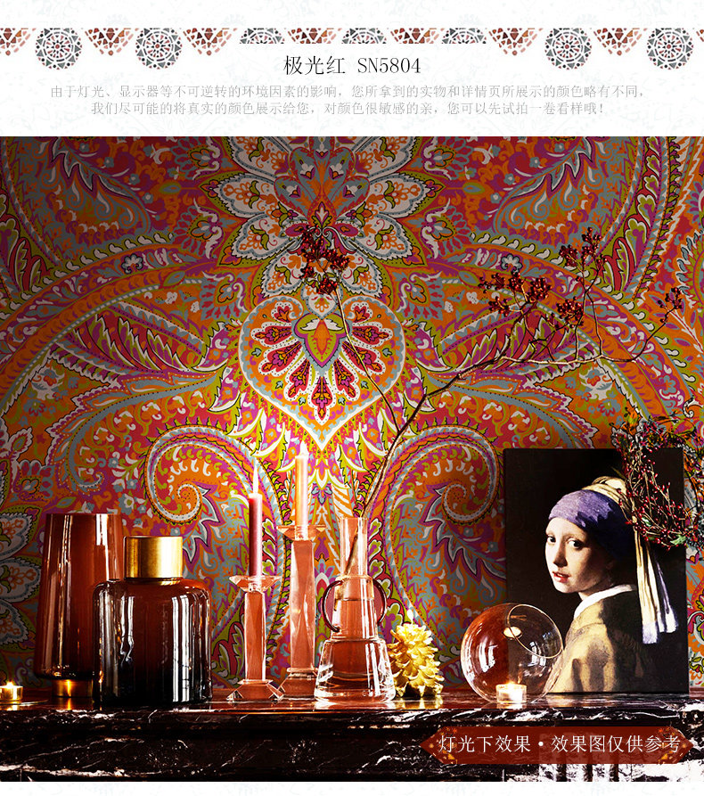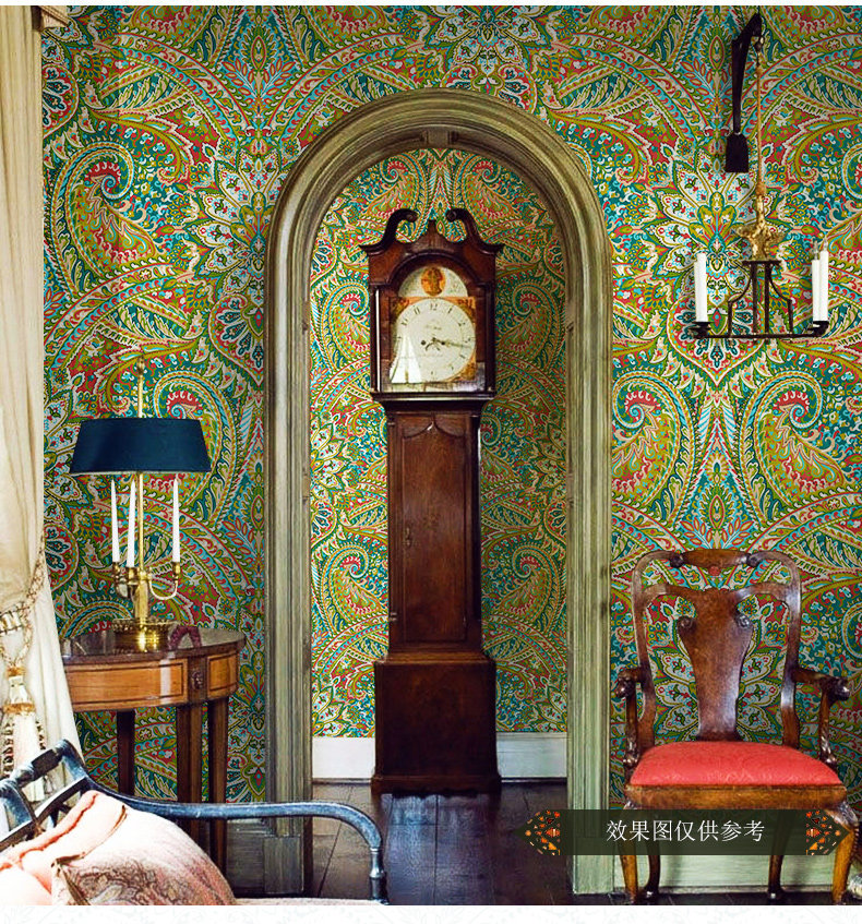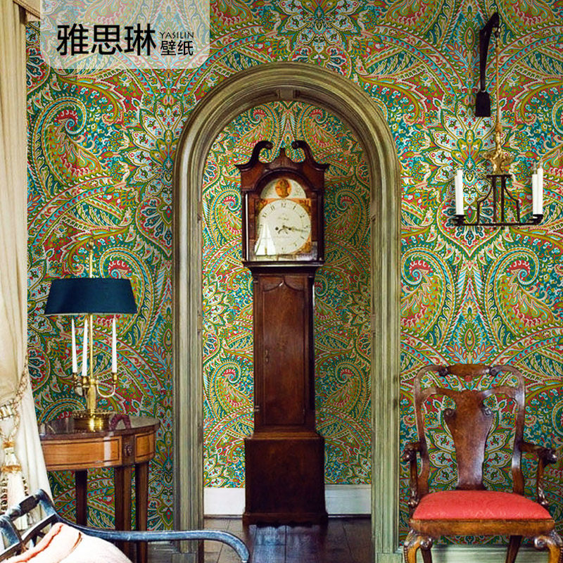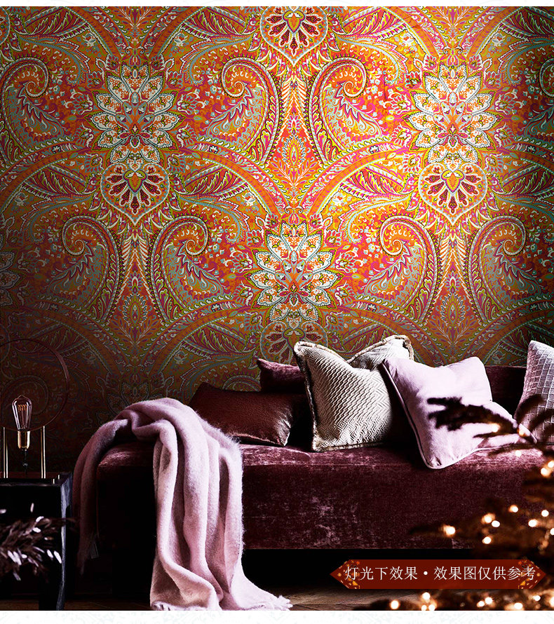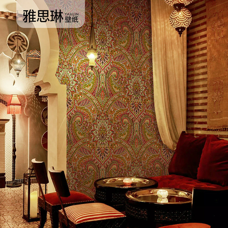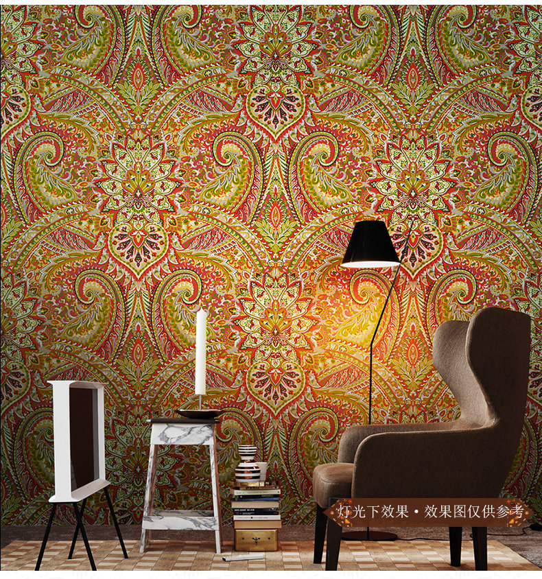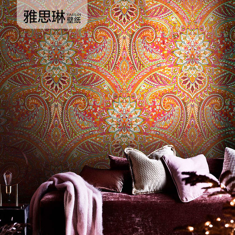 Красные обои, в американском стиле, стиль бохо