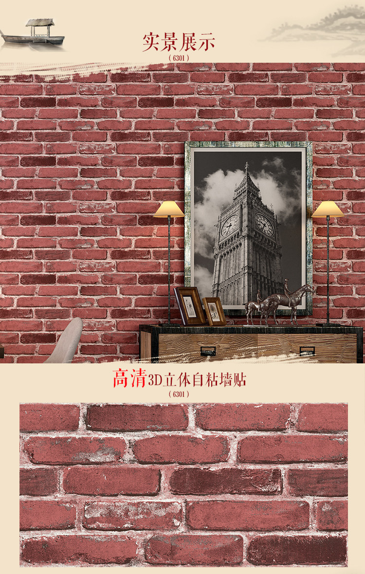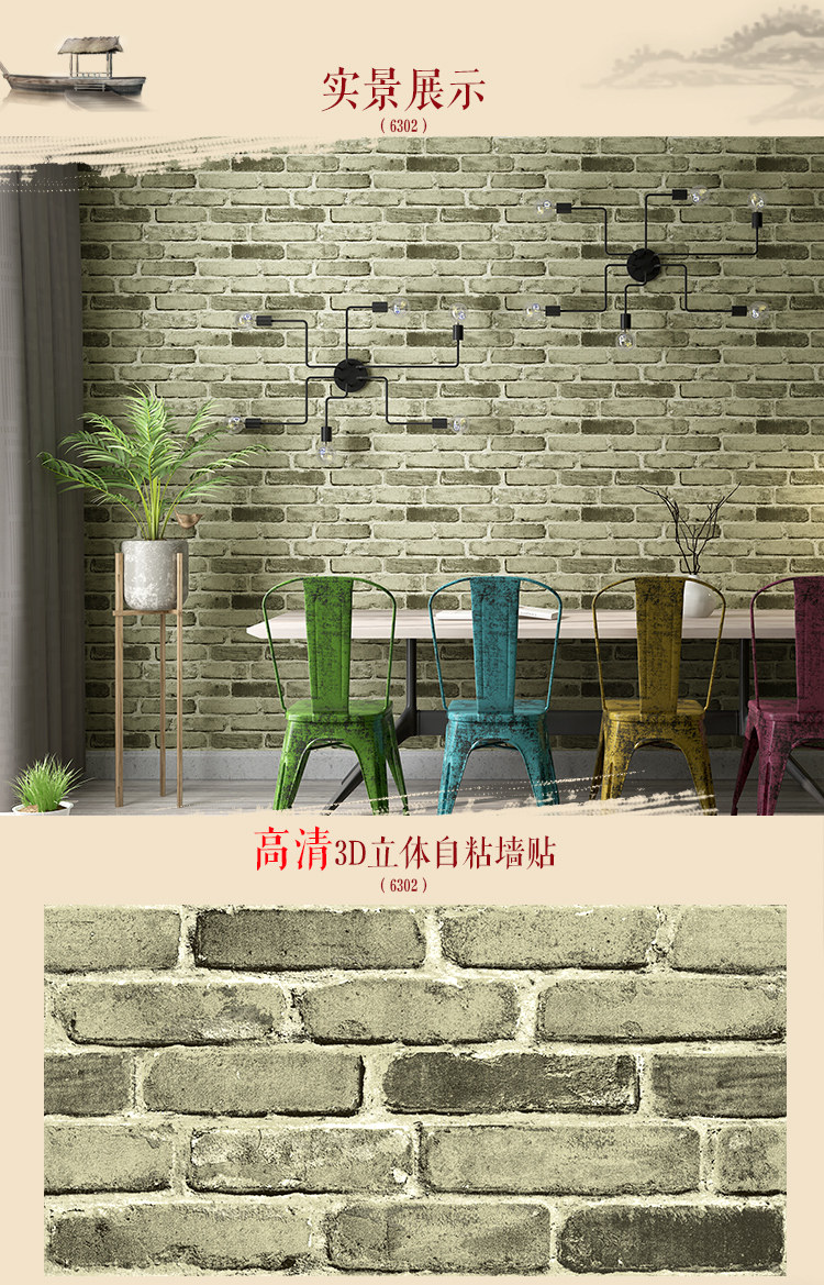 Self -Spacked 3D -кирпичный рисунок обои сами -стик для воды -Проницаемые ретро -кирпичные настенные наклейки ресторан