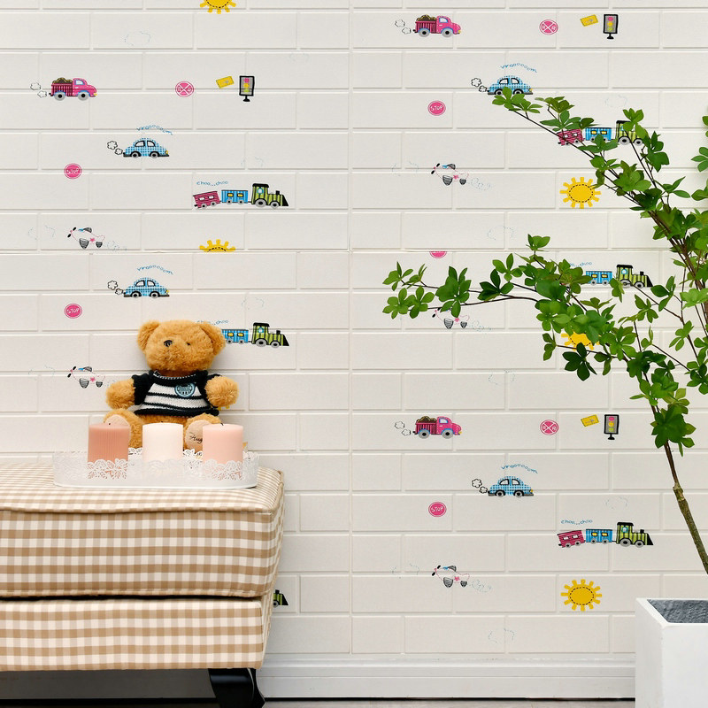 .Пена для предотвращения столкновений, детская трехмерная спальня, 3d кирпичная стена, липкие наклейки на стену, d обои, украшение, теплая 3 мультяшная стена комнаты