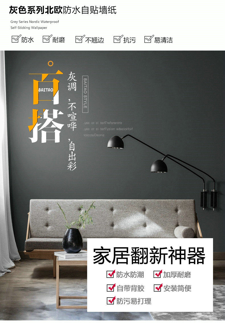 Самоклеющиеся водонепроницаемые брендовые современные обои, увеличенная толщина, подходит для студента