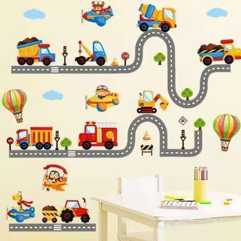 Мультяшная наклейка, детские самоклеющиеся водонепроницаемые наклейки для детского сада с рельсами на стену