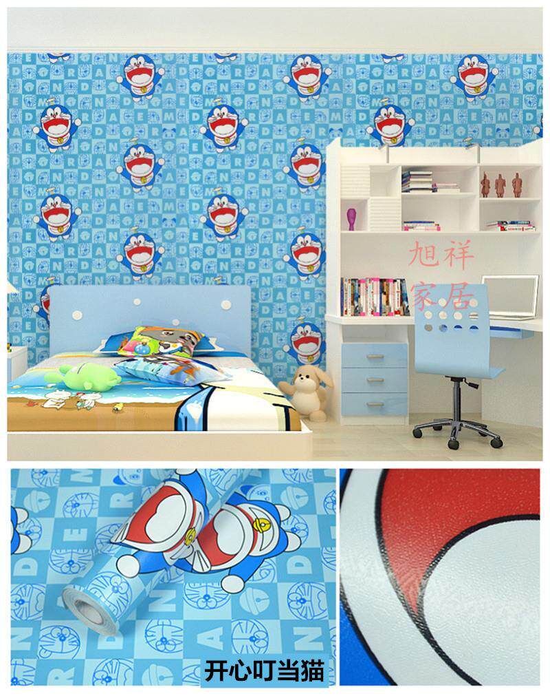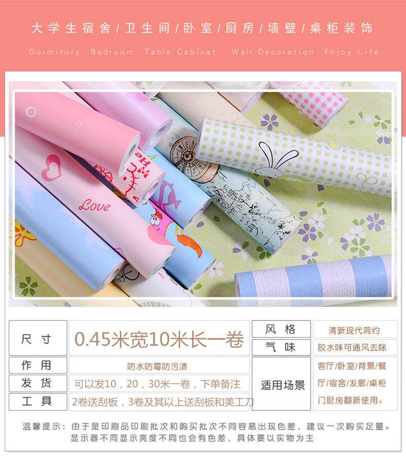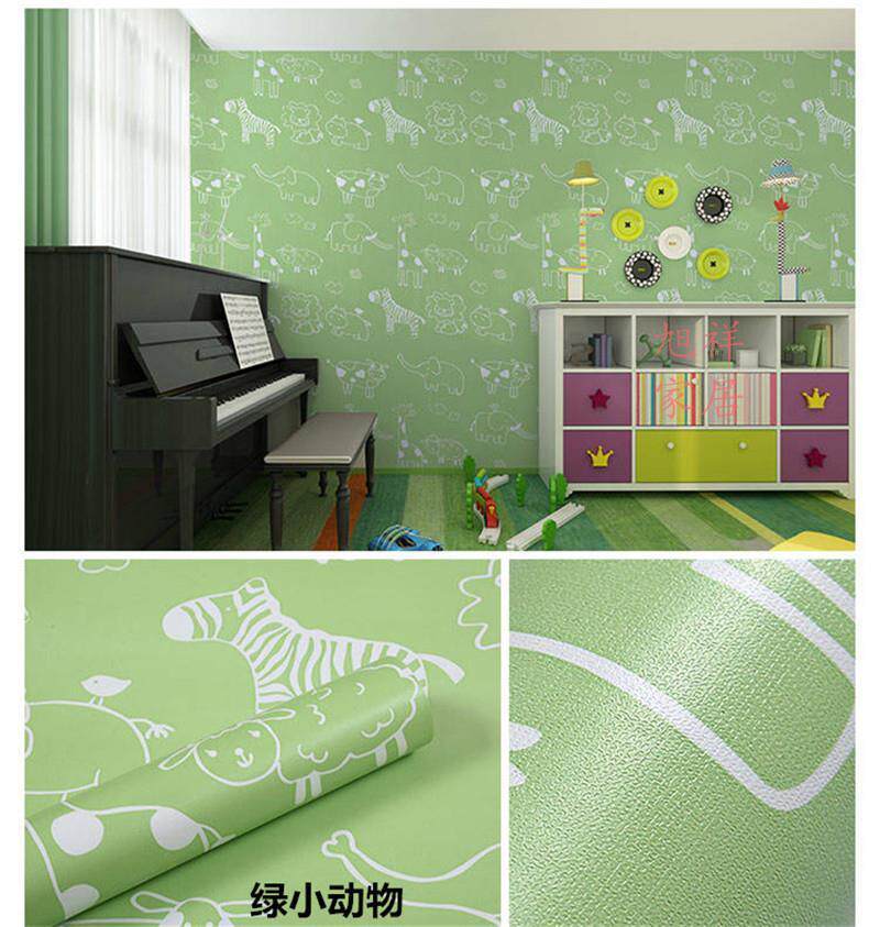 Зеленые мультяшные водонепроницаемые самоклеющиеся настенные обои, подходит для студента
