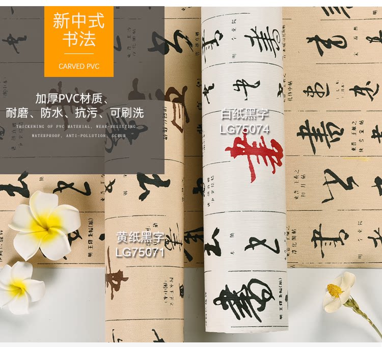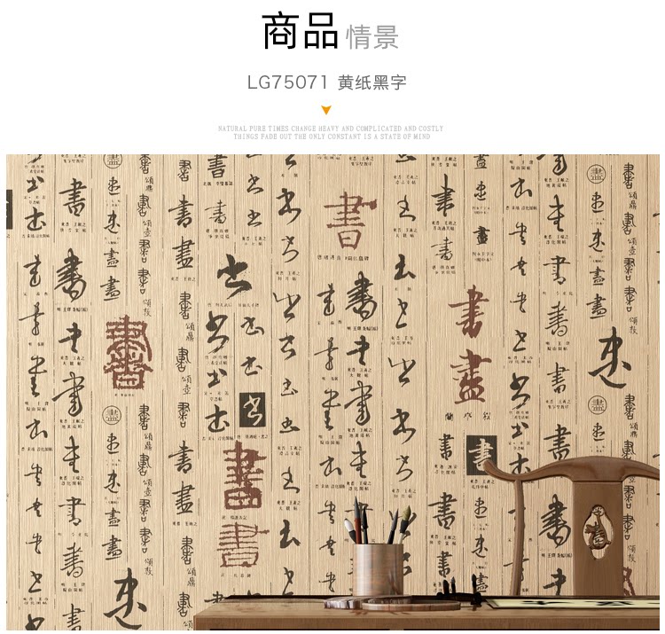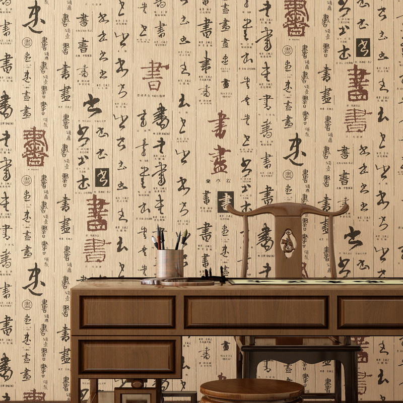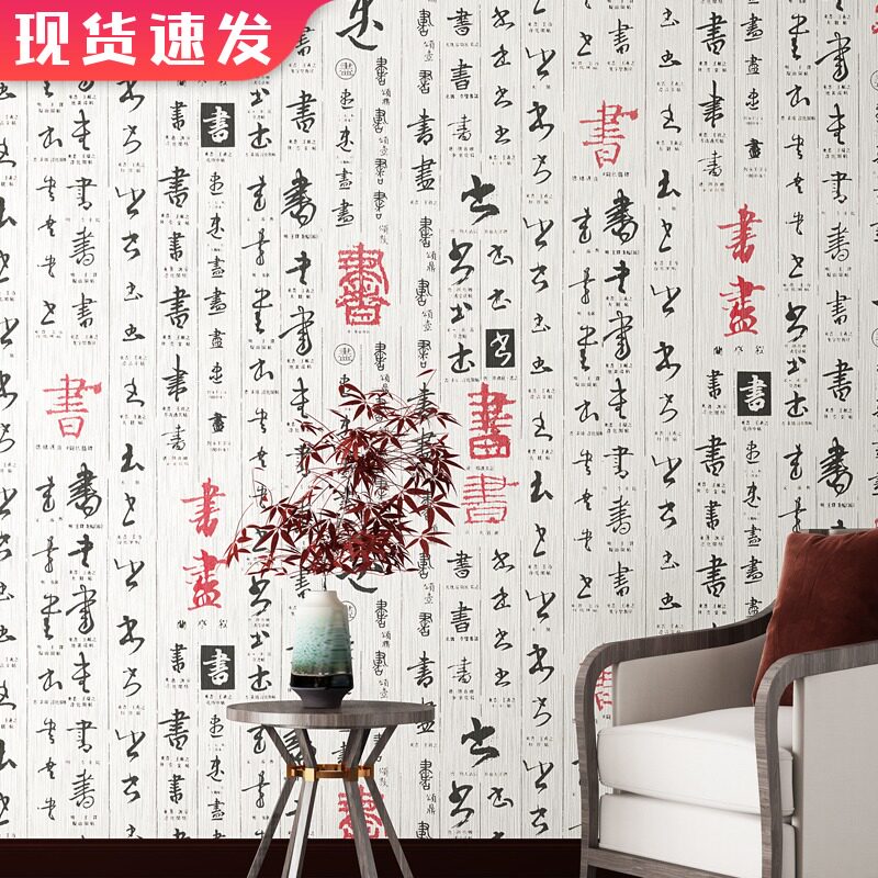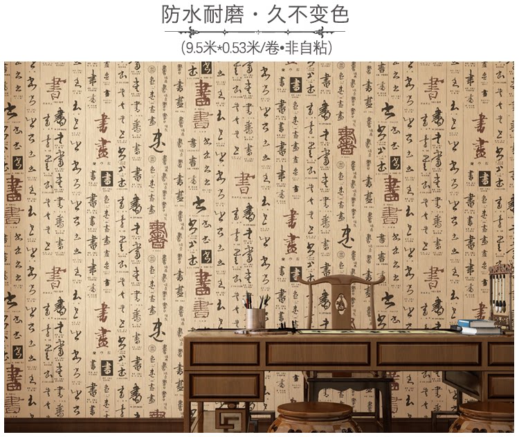 Новые китайские каллиграфические обои классические китайские дикие водонепроницаемые ПВХ Обои ретро -ресторан ресторан Отель Отель Tea House Изучение и живопись
