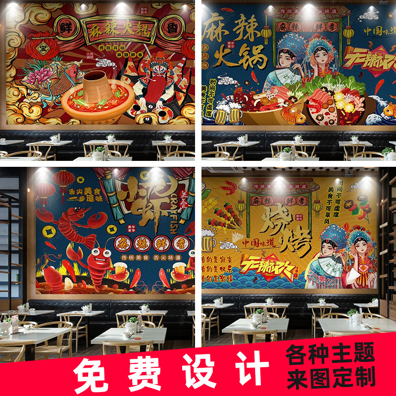 Guo Chao китайский стиль красные обои с самих -адгезивными коммерческими острыми горячими ресторанами ресторан