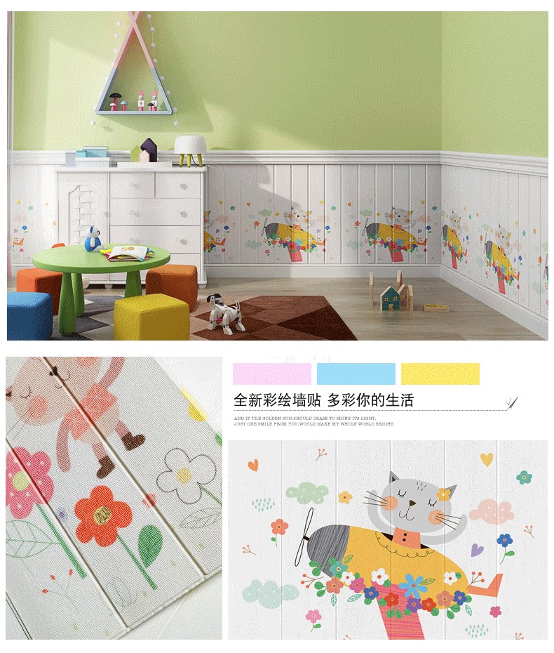 Трехмерная мультяшная кроватка на стену для кровати для детского сада из пены, водонепроницаемая водостойкая самоклеющаяся наклейка, 3D, защита от столкновений