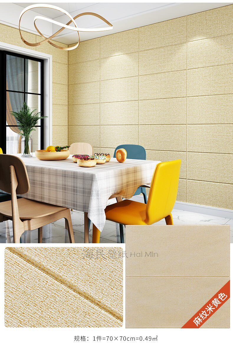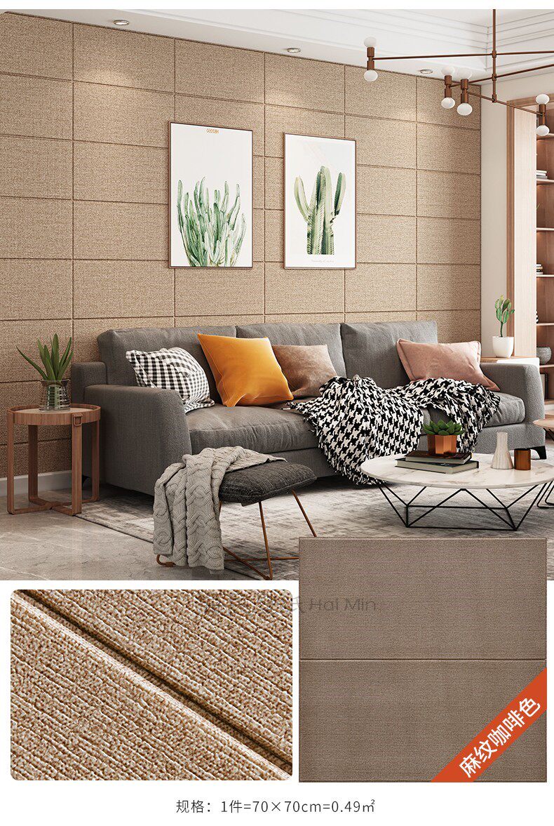 - Толстый+анти-collision+звукоизоляция льняная наклейка на стену-beige 1