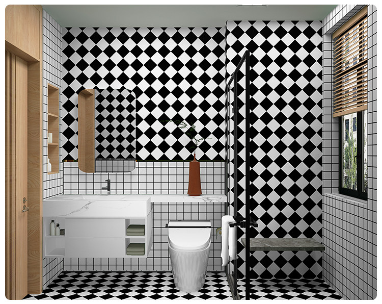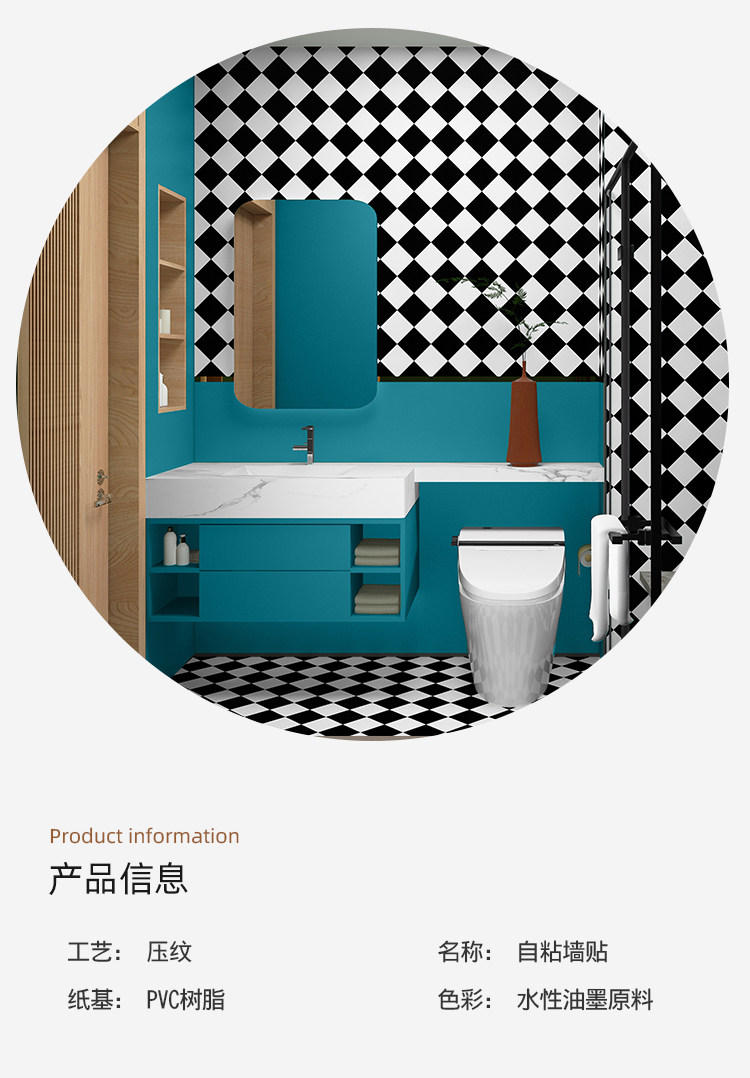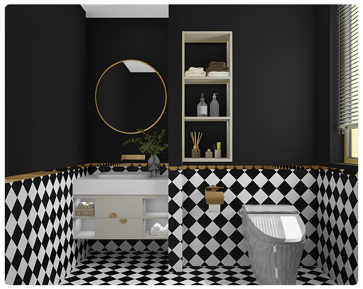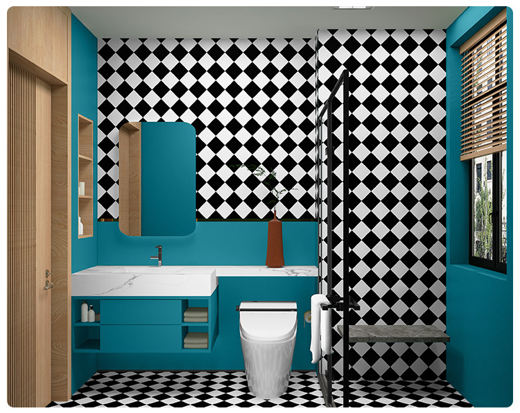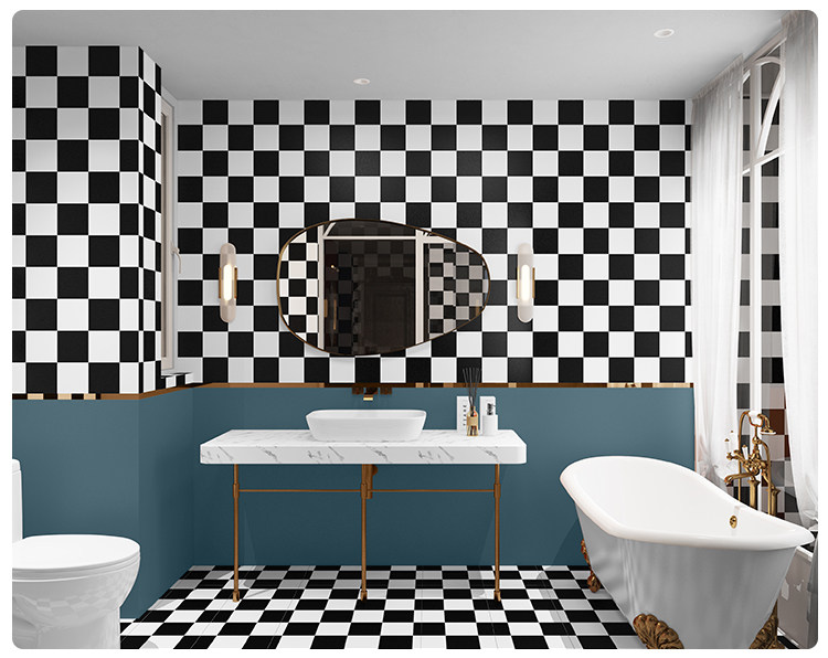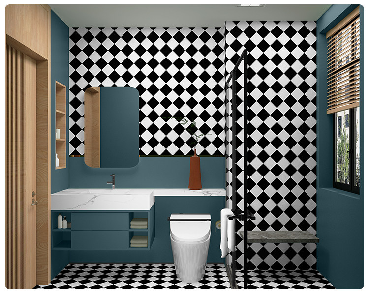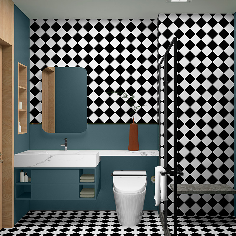 Туалетная комната, ванная комната, туалет, плитка, наклейка на стену, обои, самоклеящиеся супер водонепроницаемые черно-белые ромбовидные сетки, специальные наклейки на обои