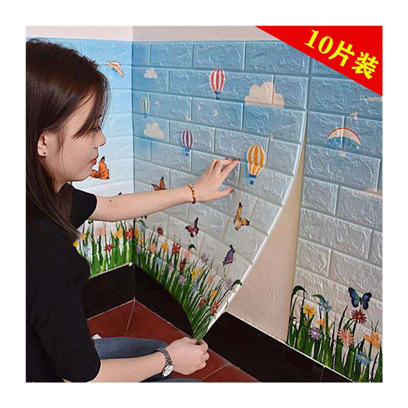 Самоклеющиеся мультяшные обои для спальни, трехмерная детская юбка на стену, пеноблок, в 3d формате