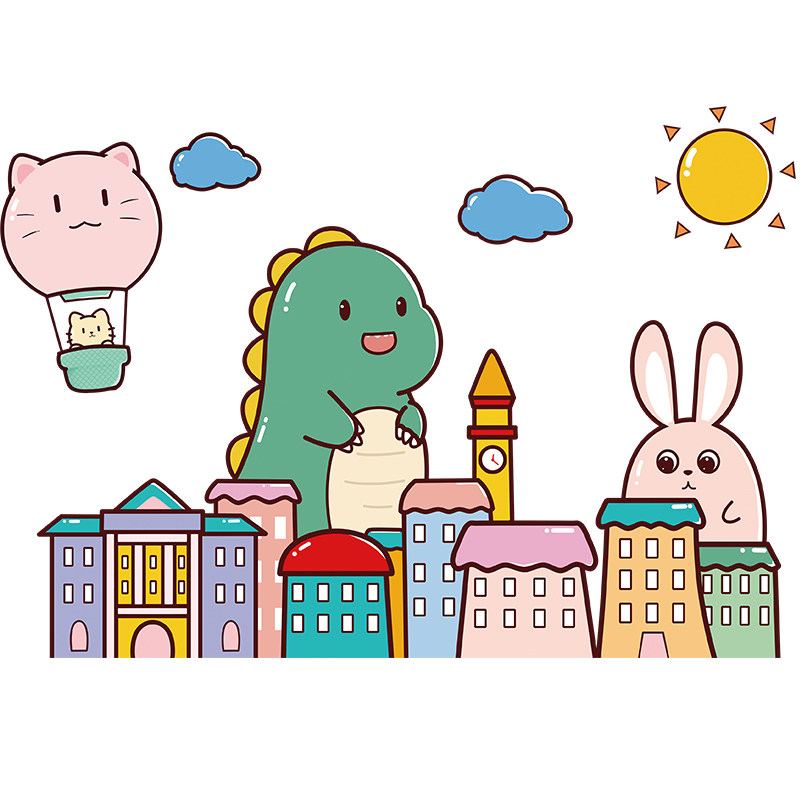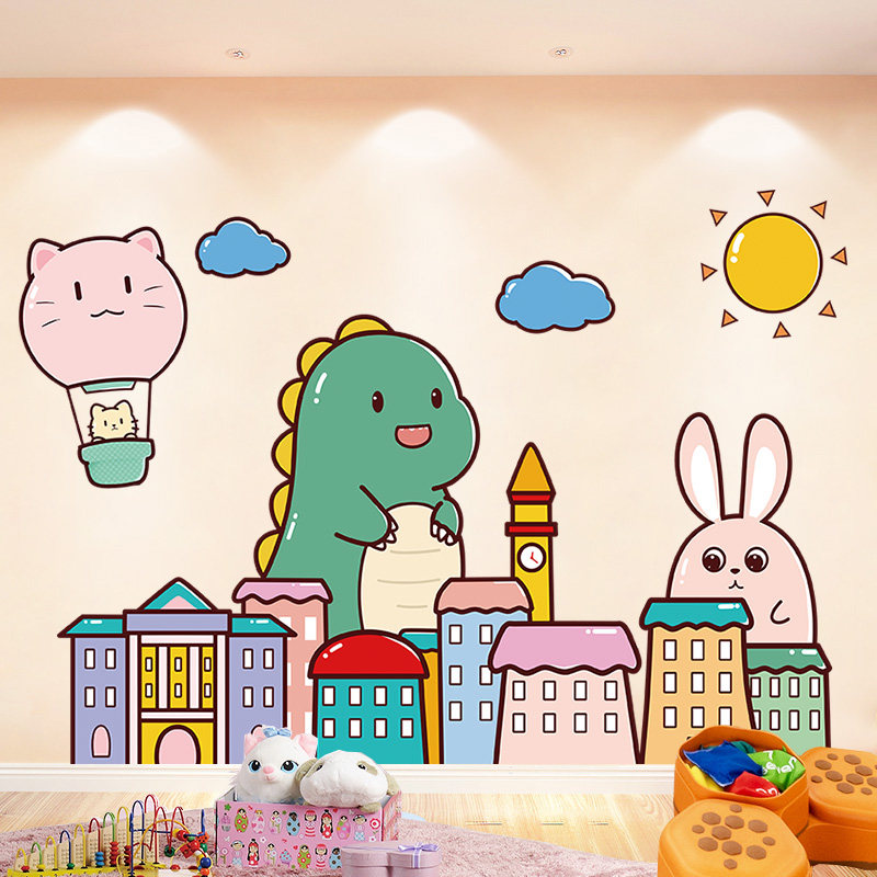 Детские наклейки для спальни, самоклеющиеся обои, мультяшная наклейка на стену, милый динозавр