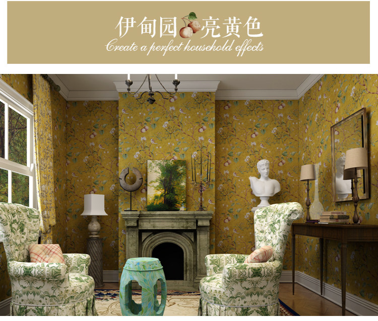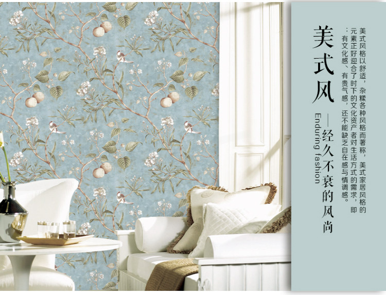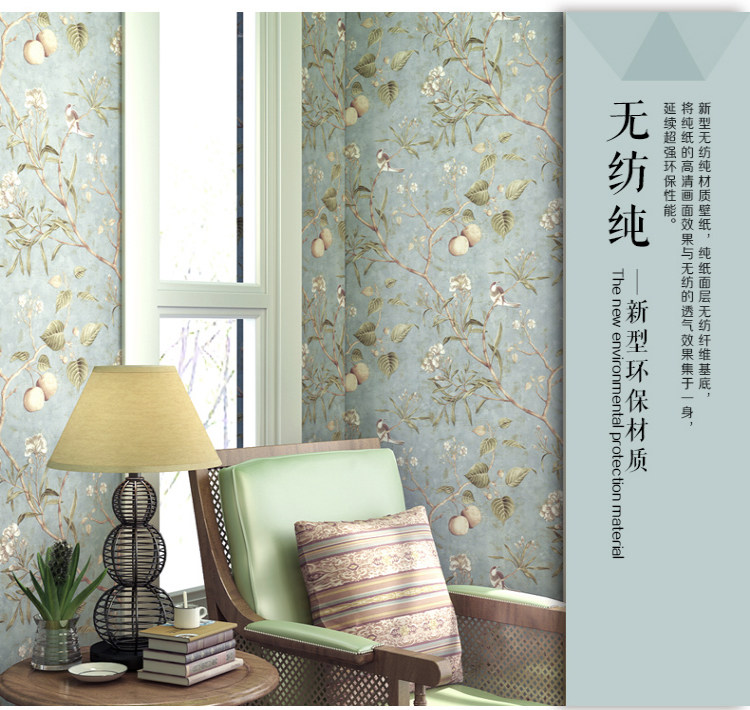 Сельские зеленые настенные обои, в американском стиле, стиль