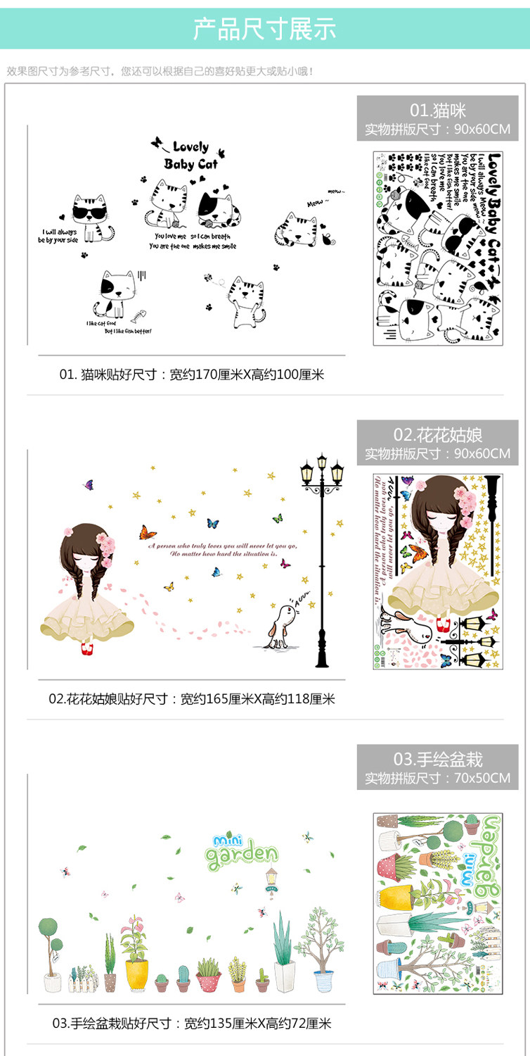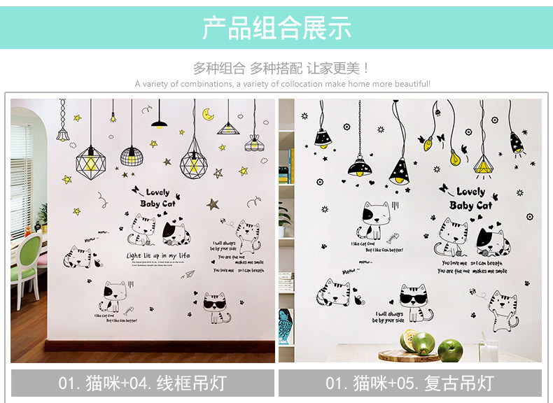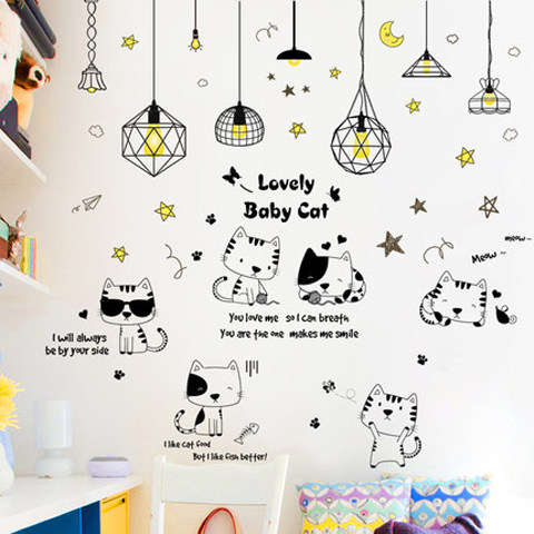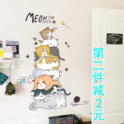 Трехмерные мультяшные наклейки на стену, наклейка для спальни, настенный самоклеющийся постер, обои, котенок, кот, в 3d формате