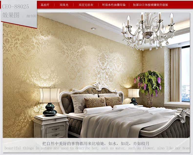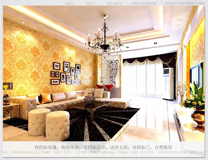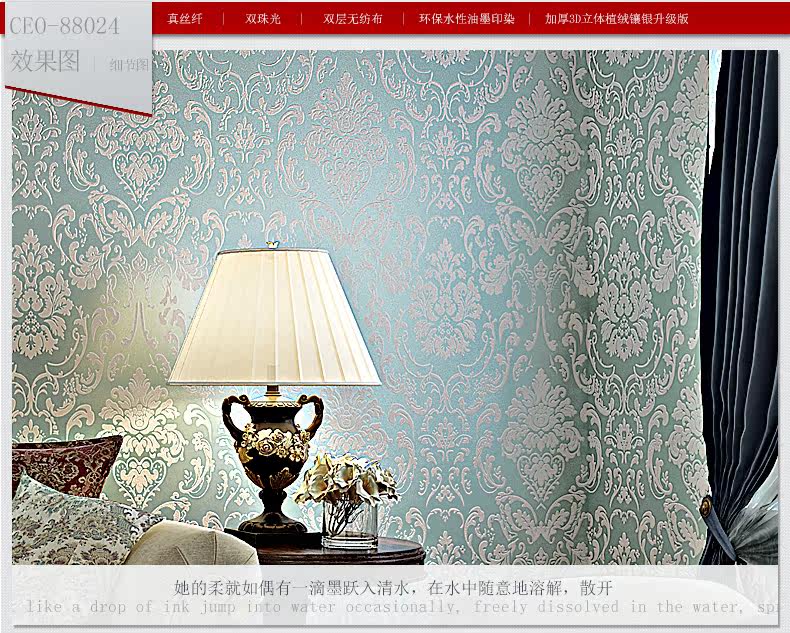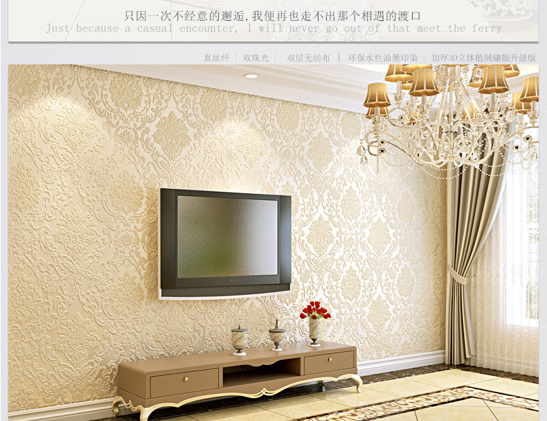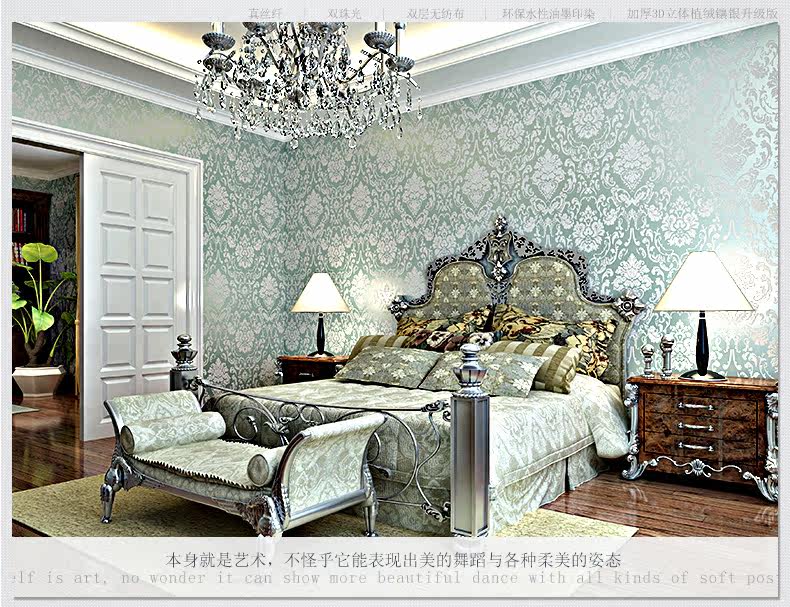 缇彩 Европейский стиль Дамаск, не нраткие обои для гостиной телевизионные фоновые исследования, учебная спальня обои, 3 -й трехмерные