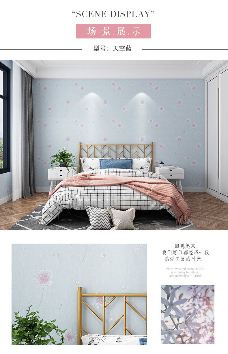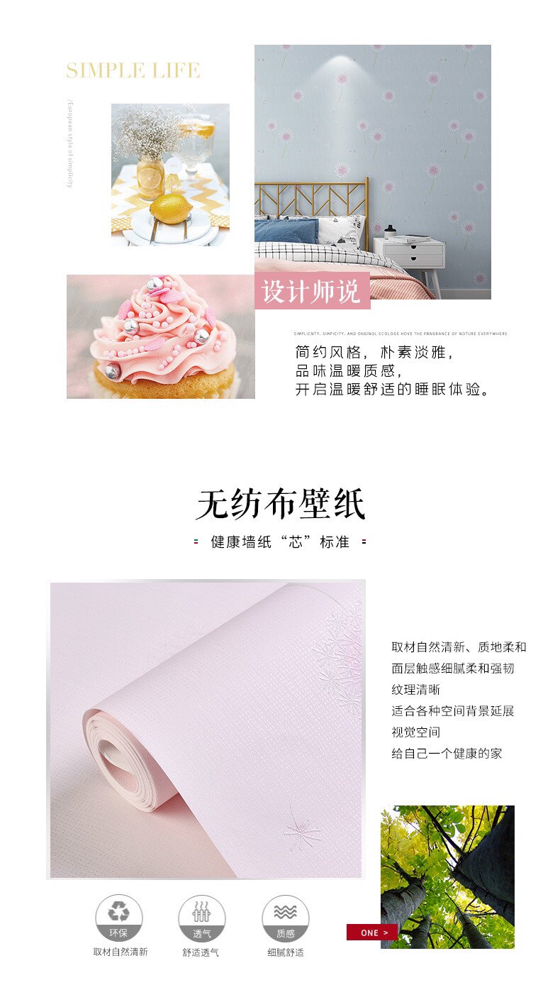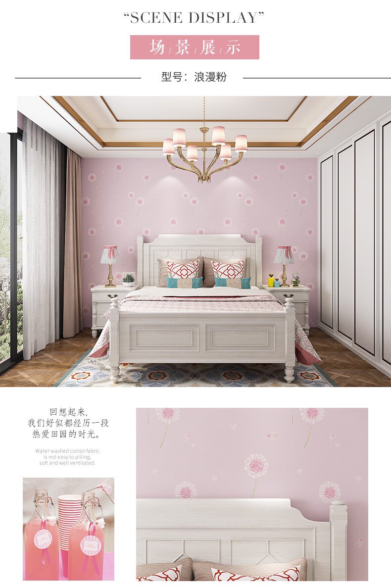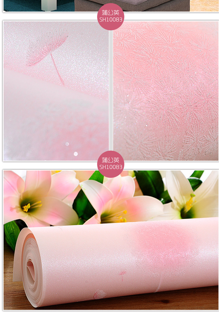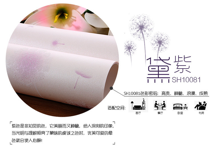 Корейские сиреневые трехмерные розовые обои из нетканого материала, 3D