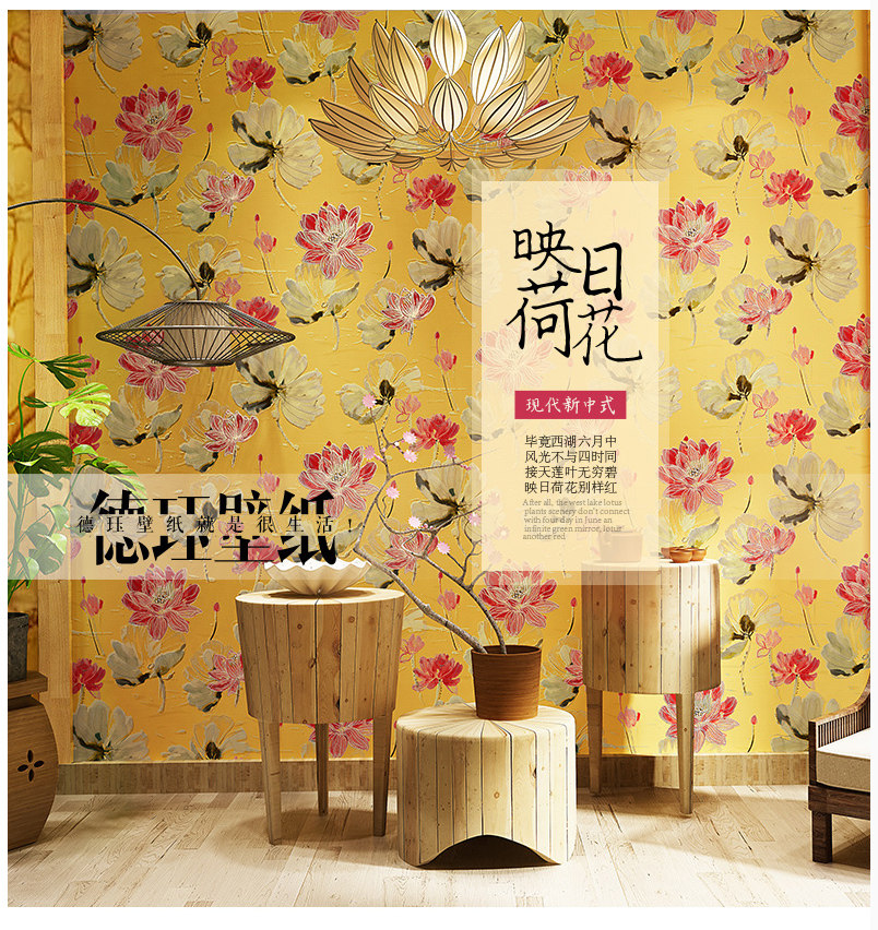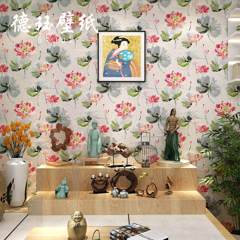 Новая китайская вышивка лотос Lotus Leaf Wallpaper Обои чернила