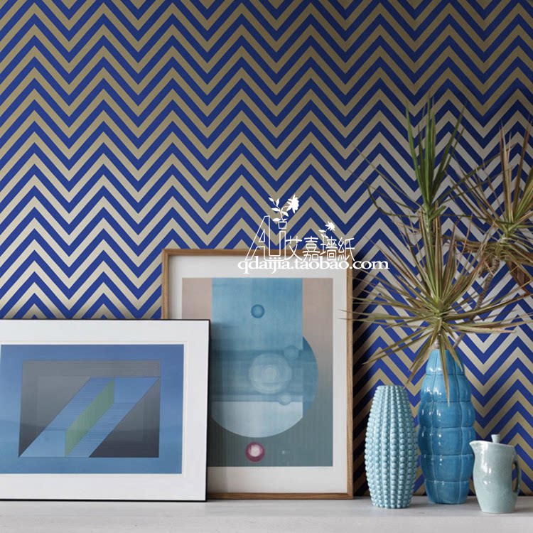 Aijia простота американская синяя человеческая линия волны складные обои B & B Снижение спальни Фоны стены обои место