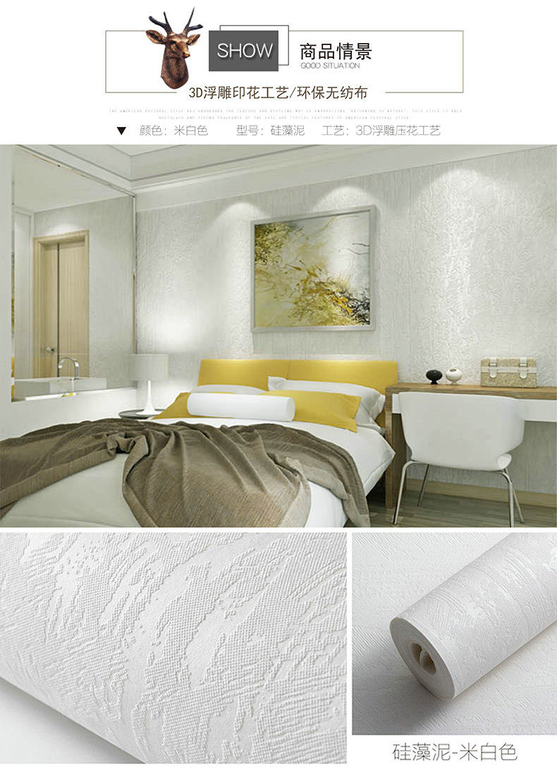 Домашние обои скандинавские пигментные свиньи белые не -слоистые обои современные простая спальня гостиная телевизор Фоновая стена