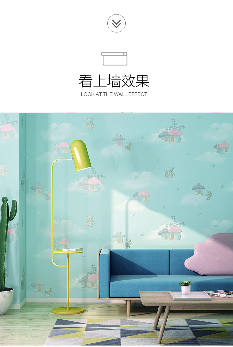 Мультяшные синие обои из нетканого материала для принцессы