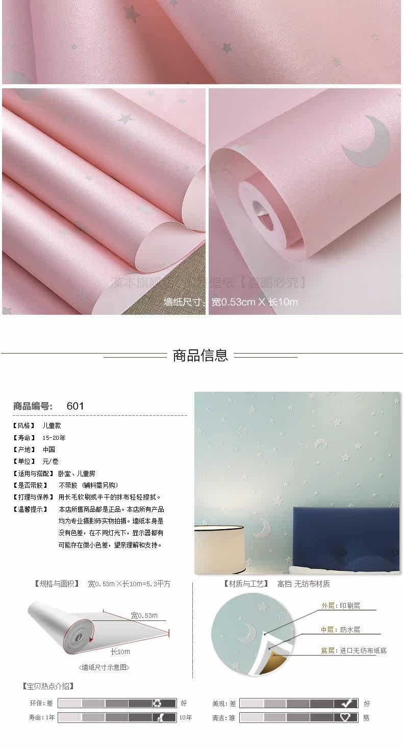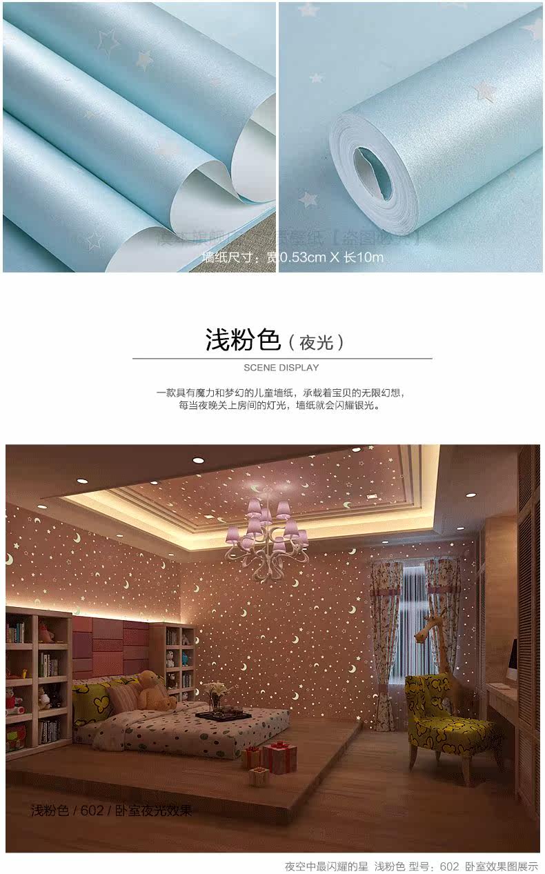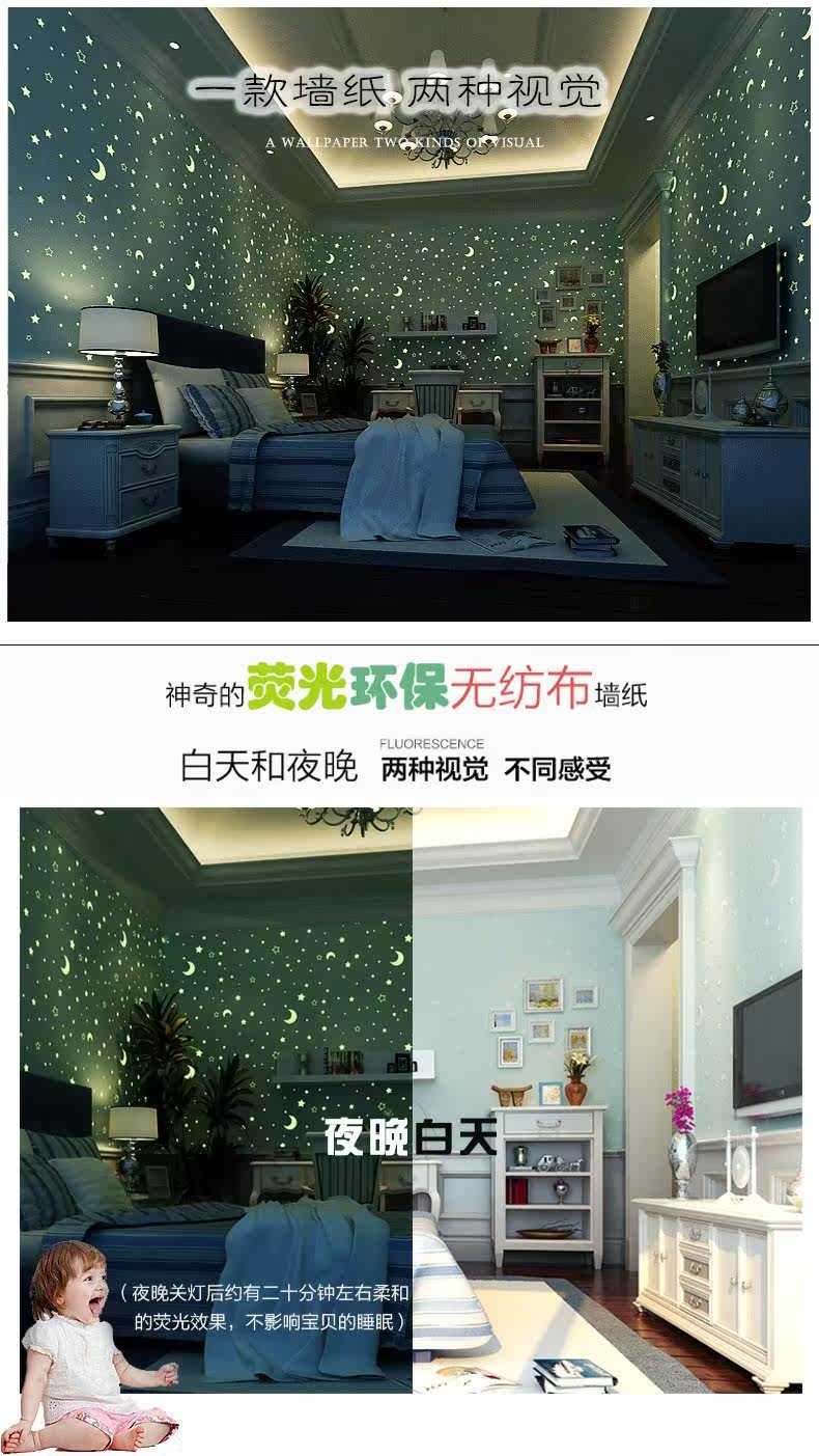 Экологичное мультяшное флуоресцентное звездное небо для спальни для мальчиков и девочек, обои, 3D