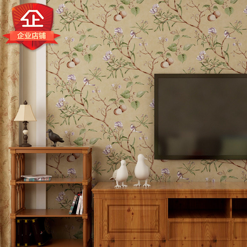 Американская сельская легкая роскошная гостиная спальня обои ретро -сад в стиле цветочные и птичьи телевизионные обои ab версия чистая бумага
