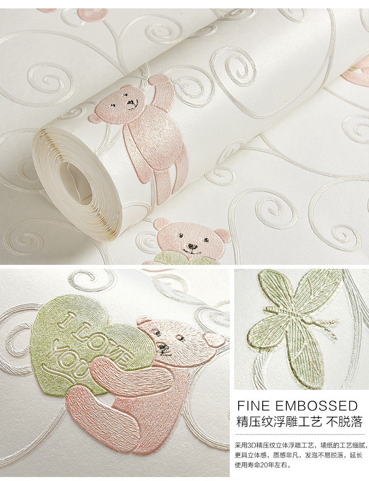 Мультяшные трехмерные обои подходит для мужчин и женщин из нетканого материала, с медвежатами, 3D