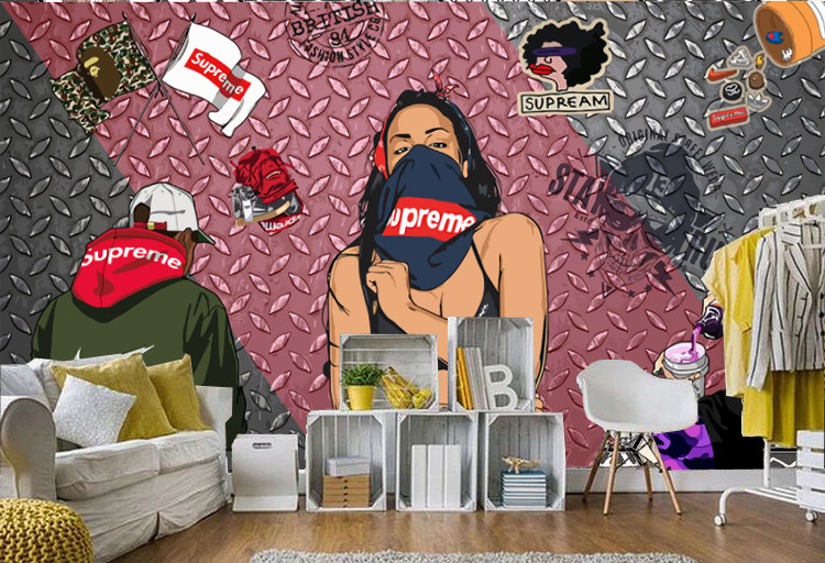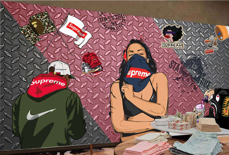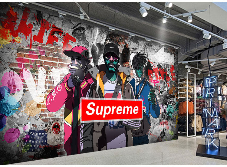 Supreme Brand Wall Decorative Foine Wall Wallpaper Творческая тенденция модная мужская магазин одежды простые обои