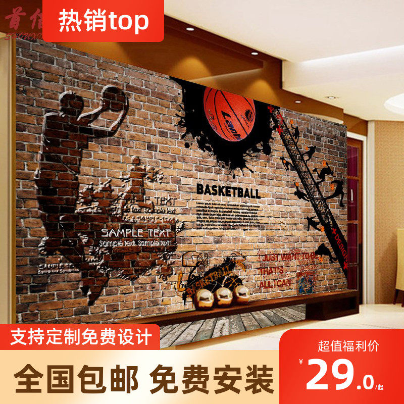 Рабочие обои баскетбол NBA Кирпичная стена Тема промышленного стиля фона стена роспись ретро старая граффити 3D стеновая ткань