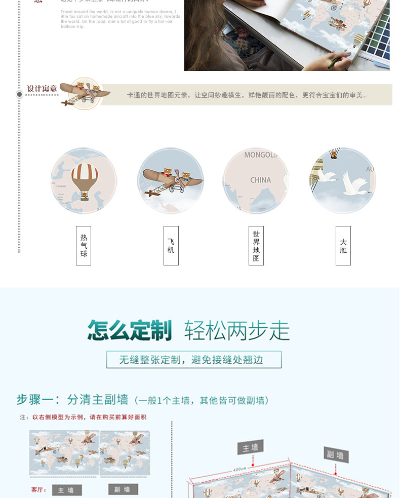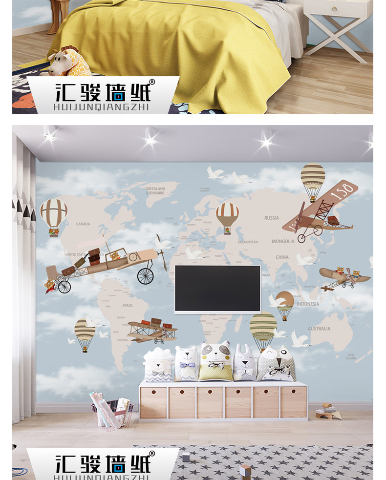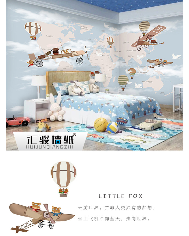 Мультяшный самолет, воздушный шар для мальчиков и девочек, обои для спальни, экологичная карта