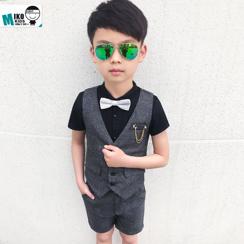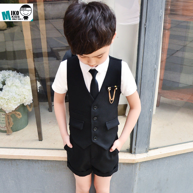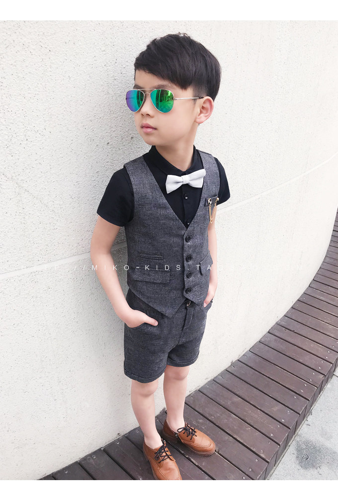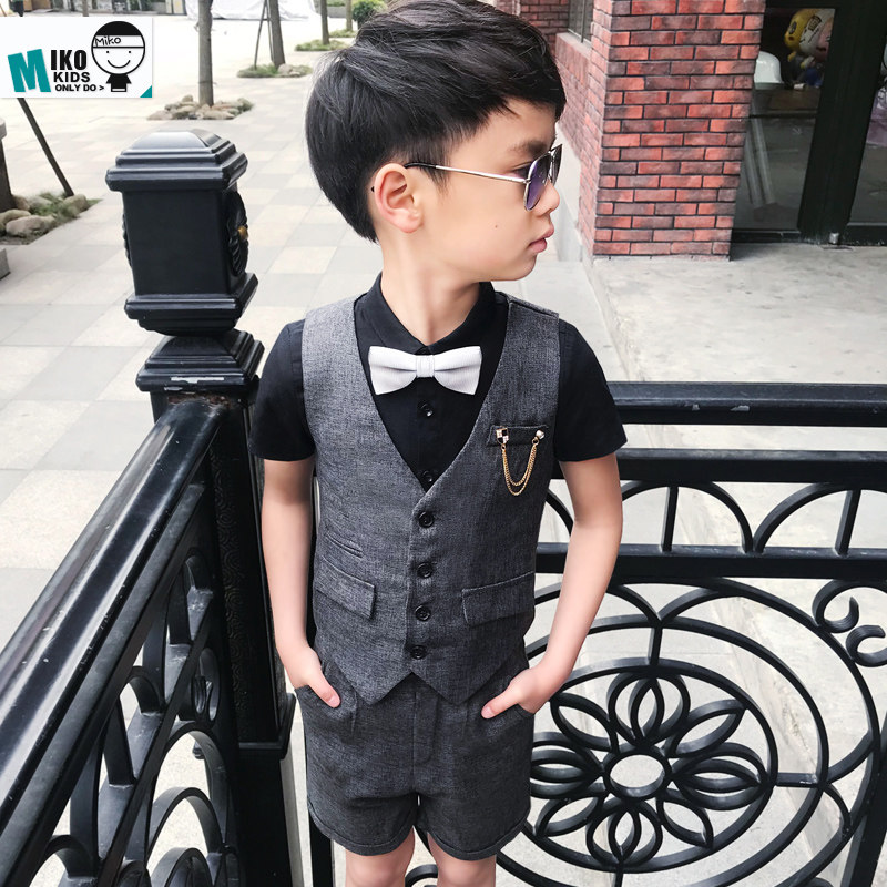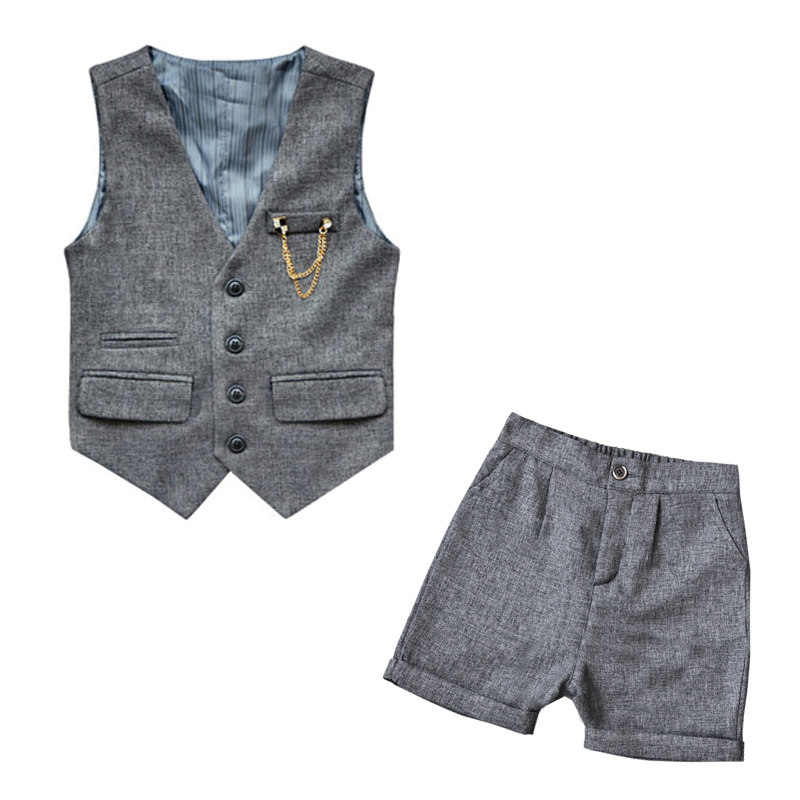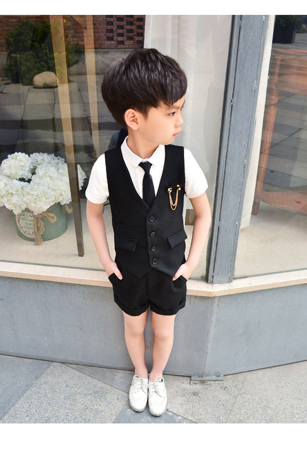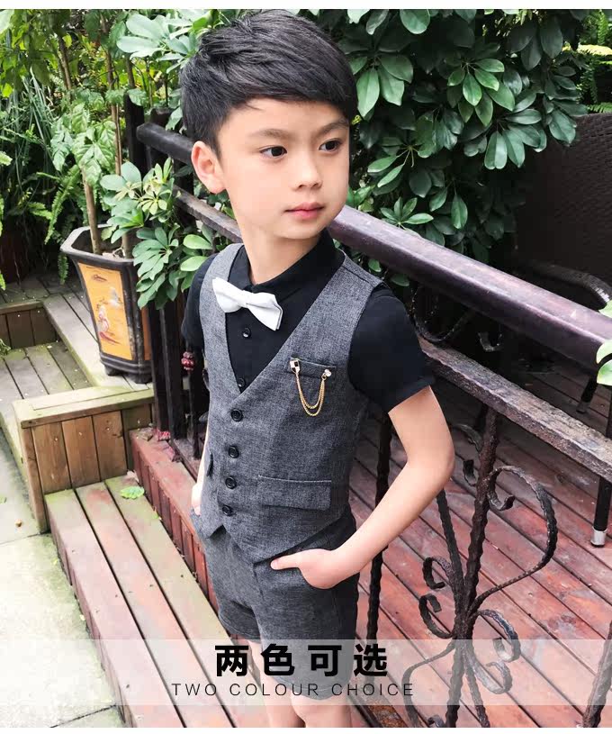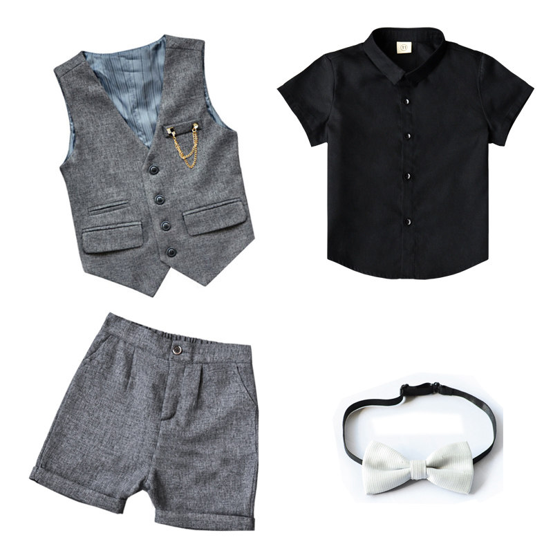 Жилет для мальчиков, платье, комплект, летний детский пиджак классического кроя, штаны, в корейском стиле, короткий рукав, 3 предмета, 6 лет