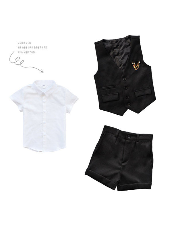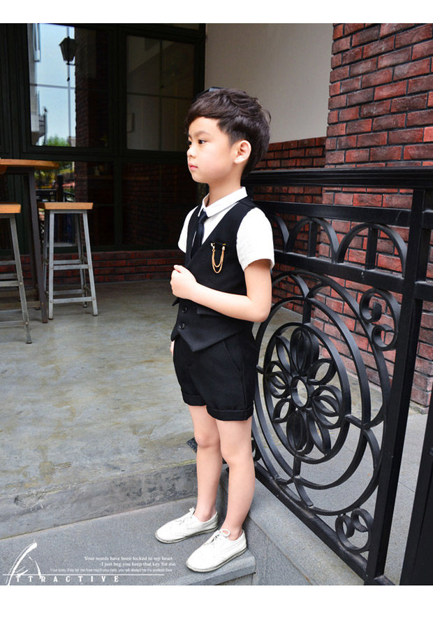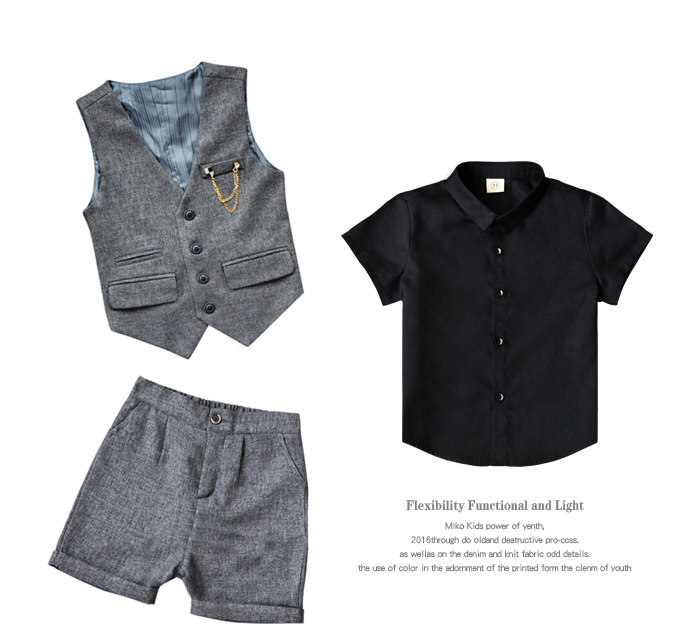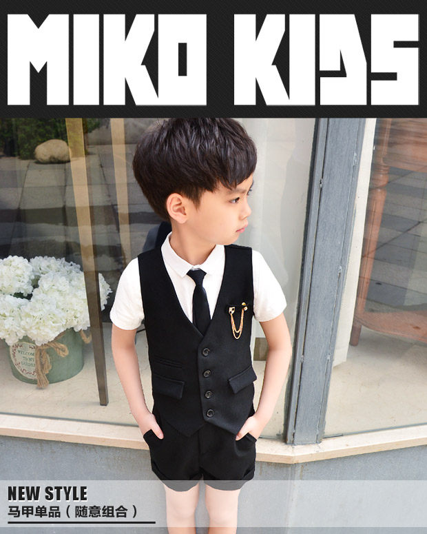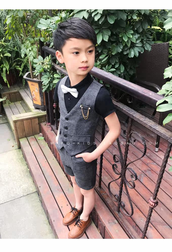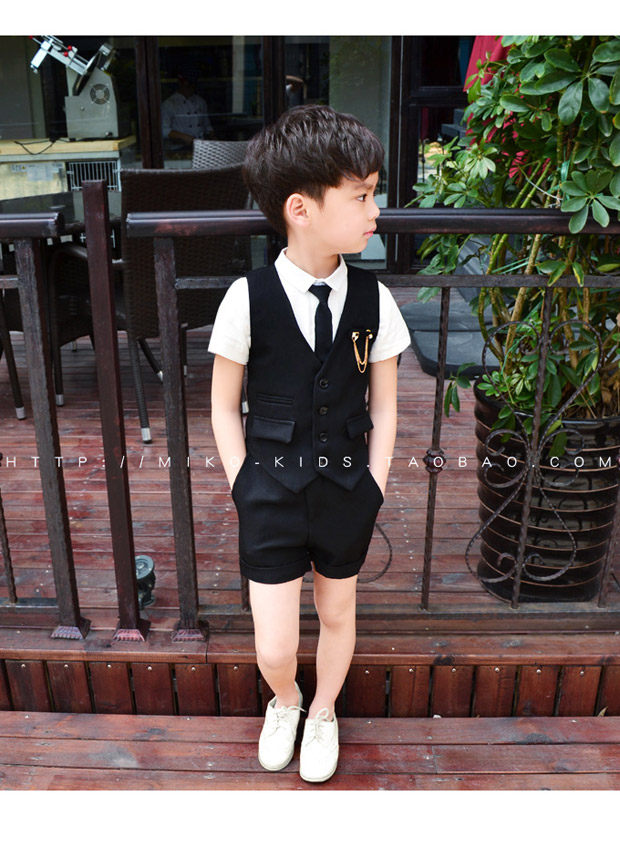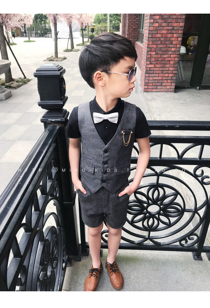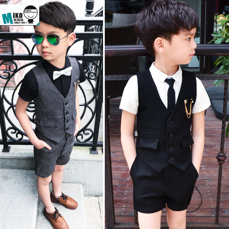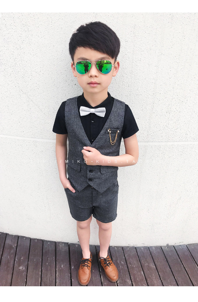 Жилет для мальчиков, платье, комплект, летний детский пиджак классического кроя, штаны, в корейском стиле, короткий рукав, 3 предмета, 6 лет