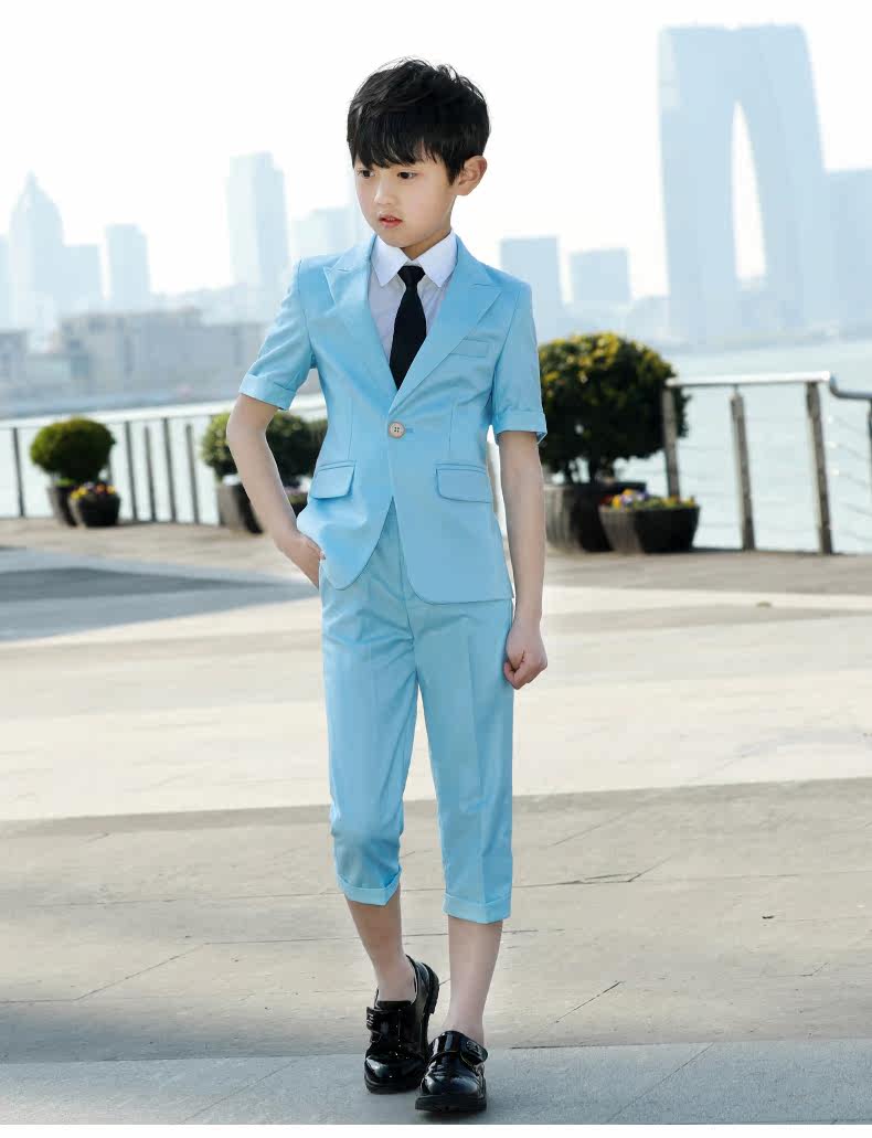 Детский классический костюм для мальчиков, куртка, летнее платье, короткий рукав, подходит для подростков, коллекция 2021