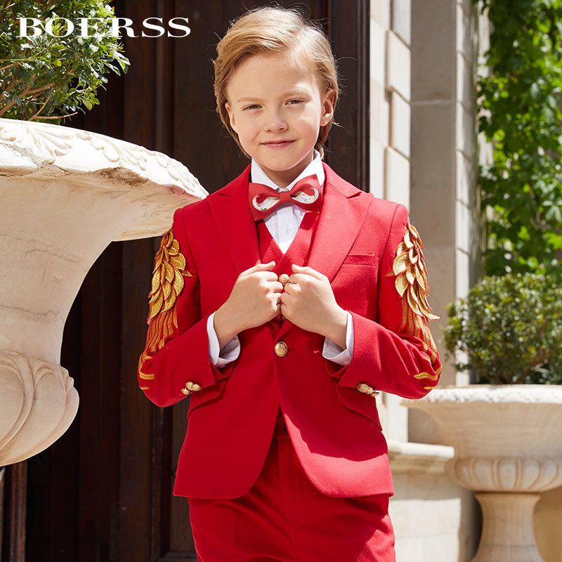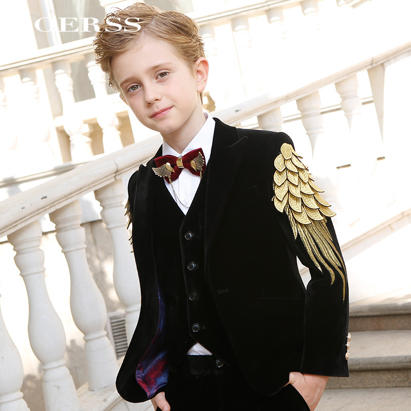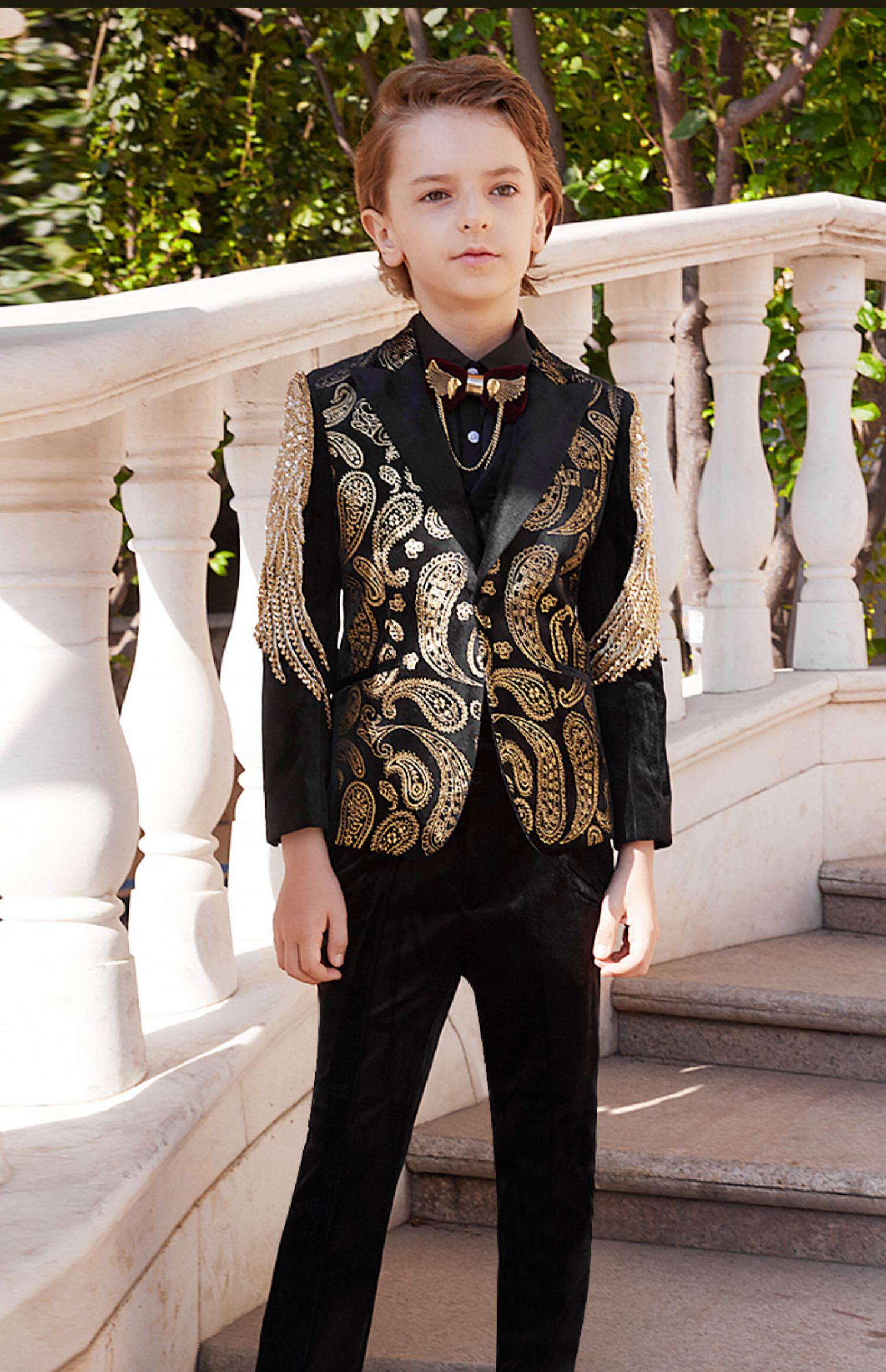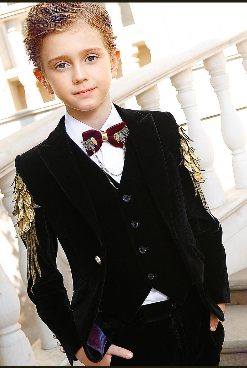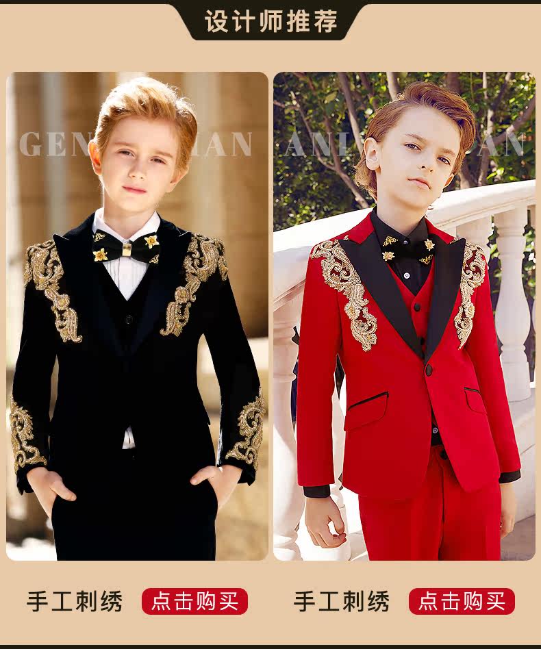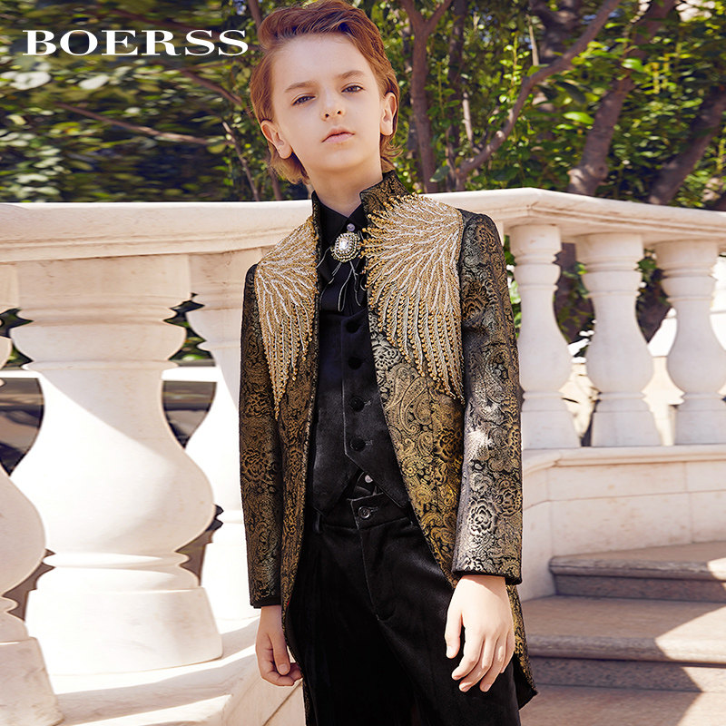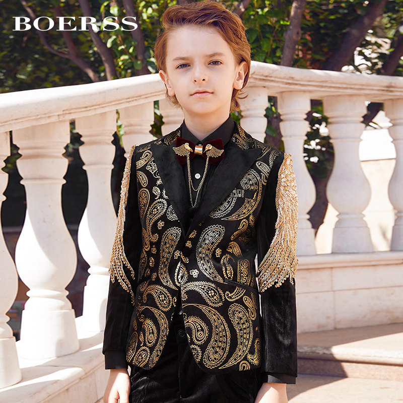 Детский классический костюм, элегантный элитный бархатный костюм мальчика цветочника, легкий роскошный стиль, с вышивкой, для подиума