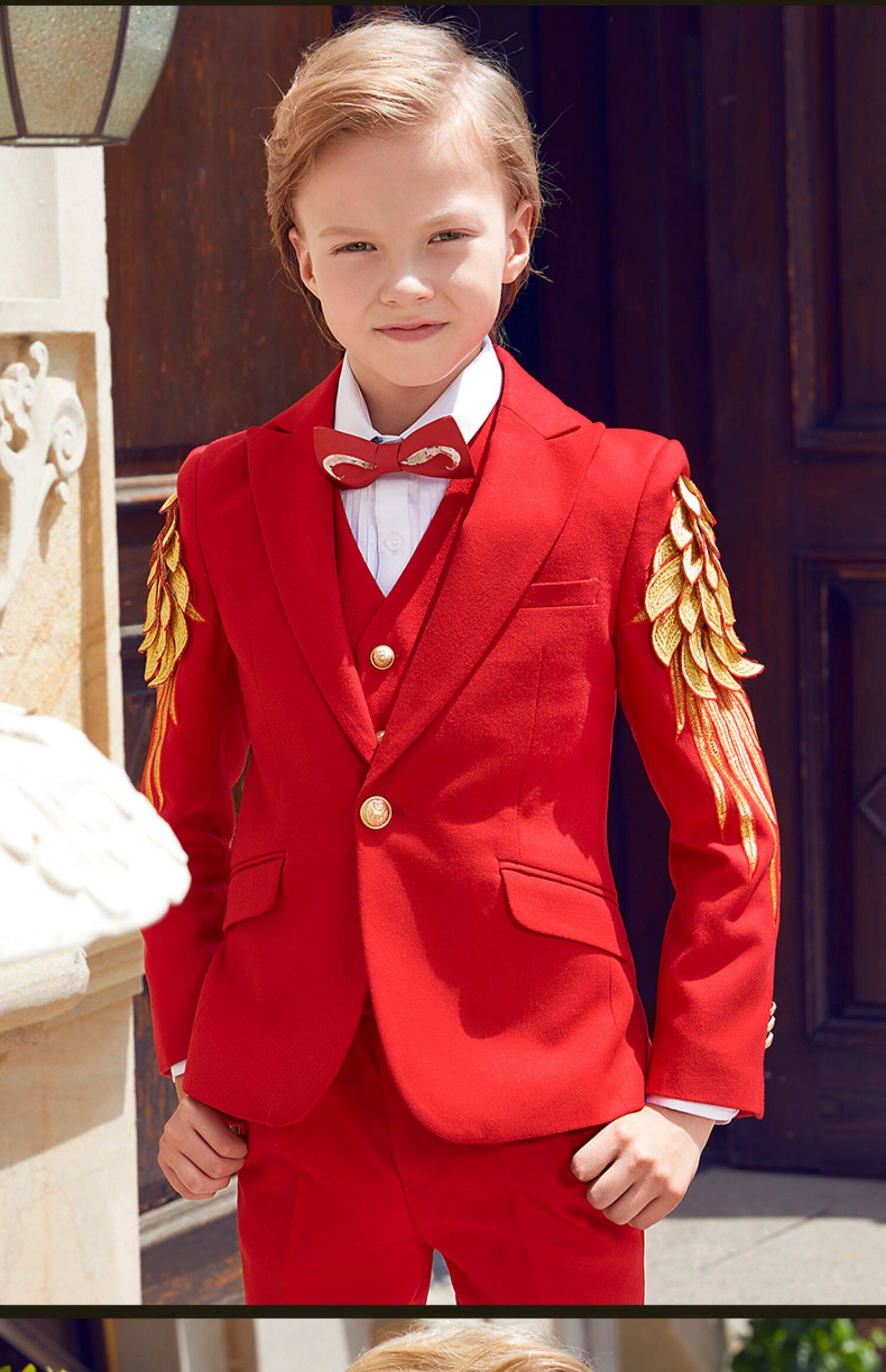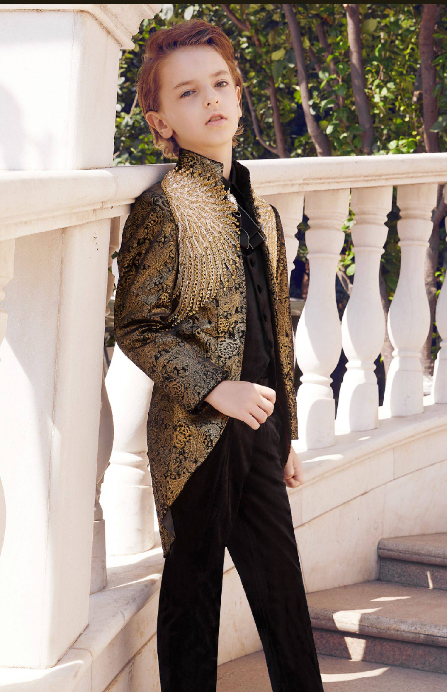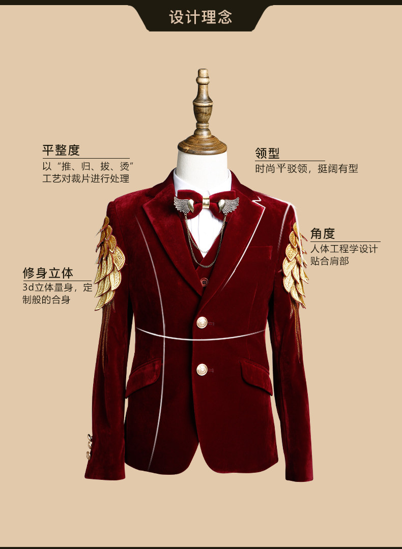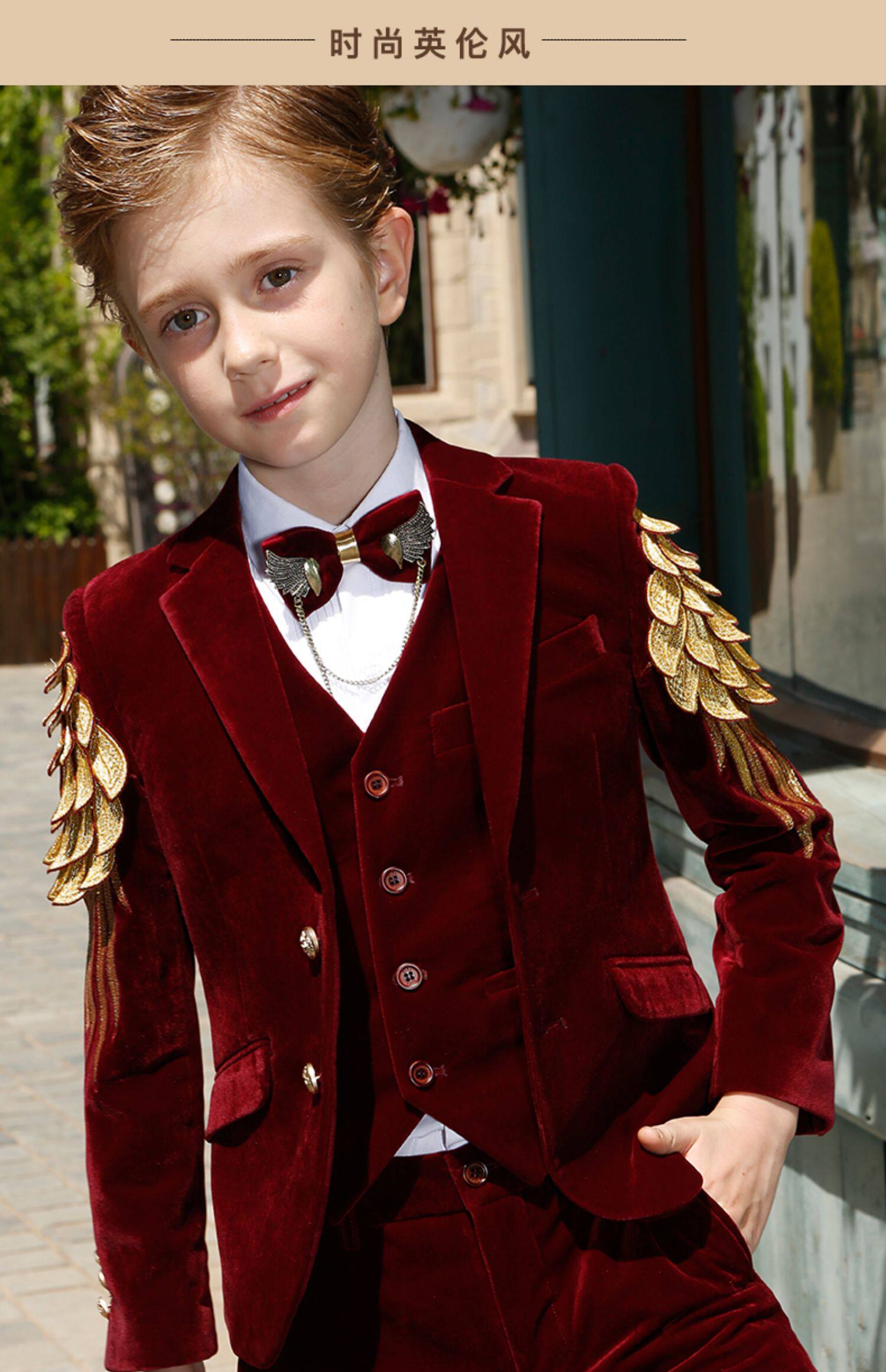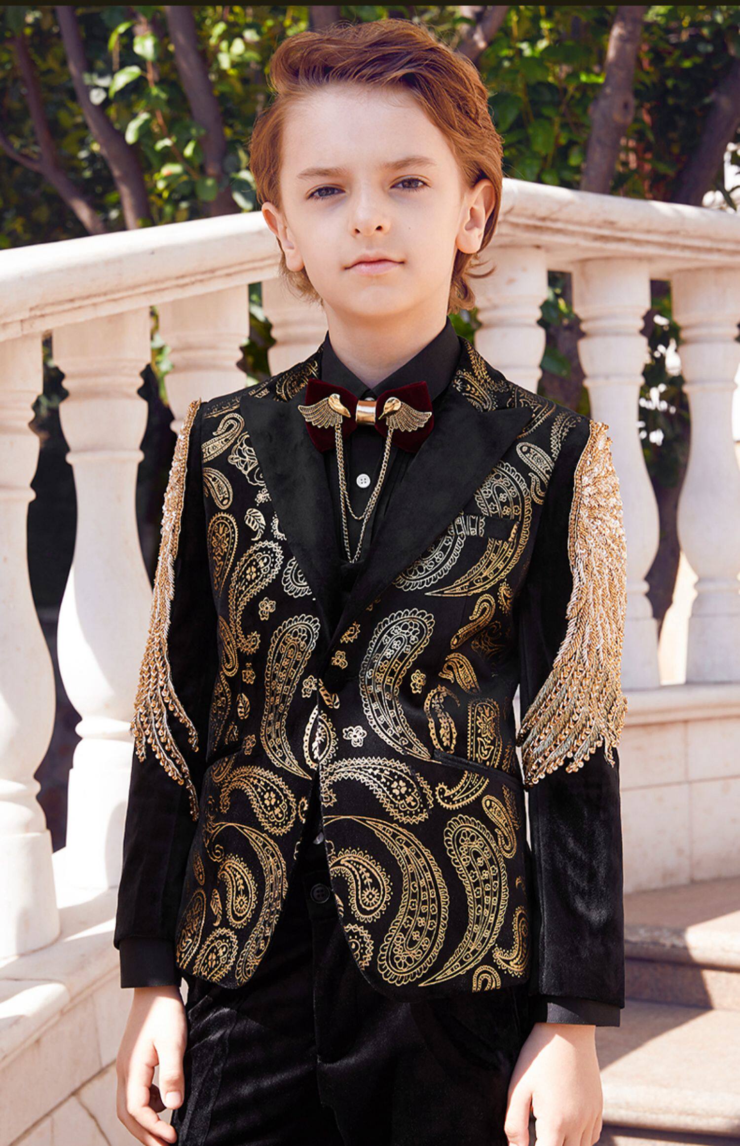 Детский классический костюм, элегантный элитный бархатный костюм мальчика цветочника, легкий роскошный стиль, с вышивкой, для подиума