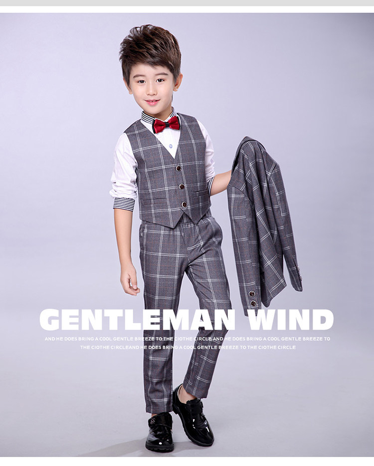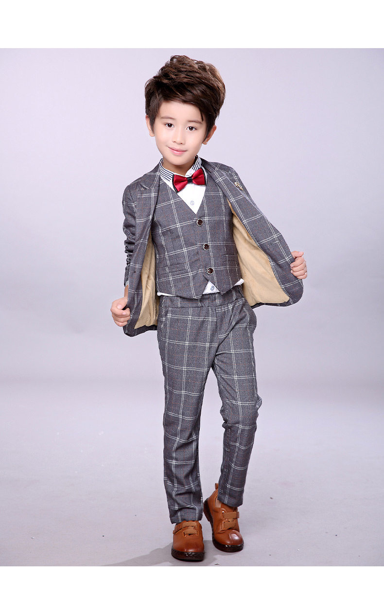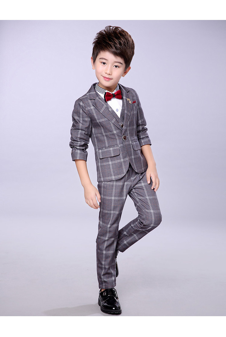 - Серый клетчатый комплект из четырех предметов (включая рубашку)