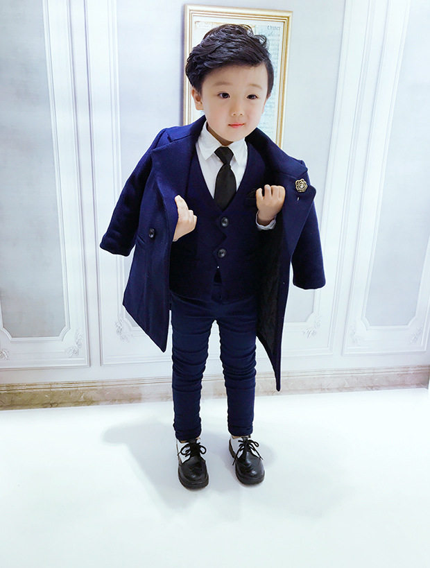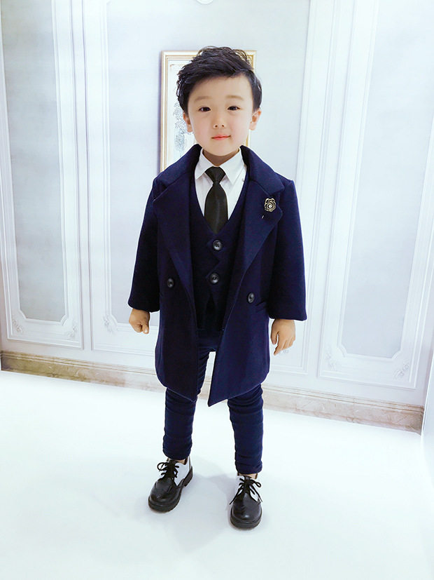 Детский костюм мальчика цветочника, классический костюм, шерстяной пуховик, платье, увеличенная толщина, в западном стиле