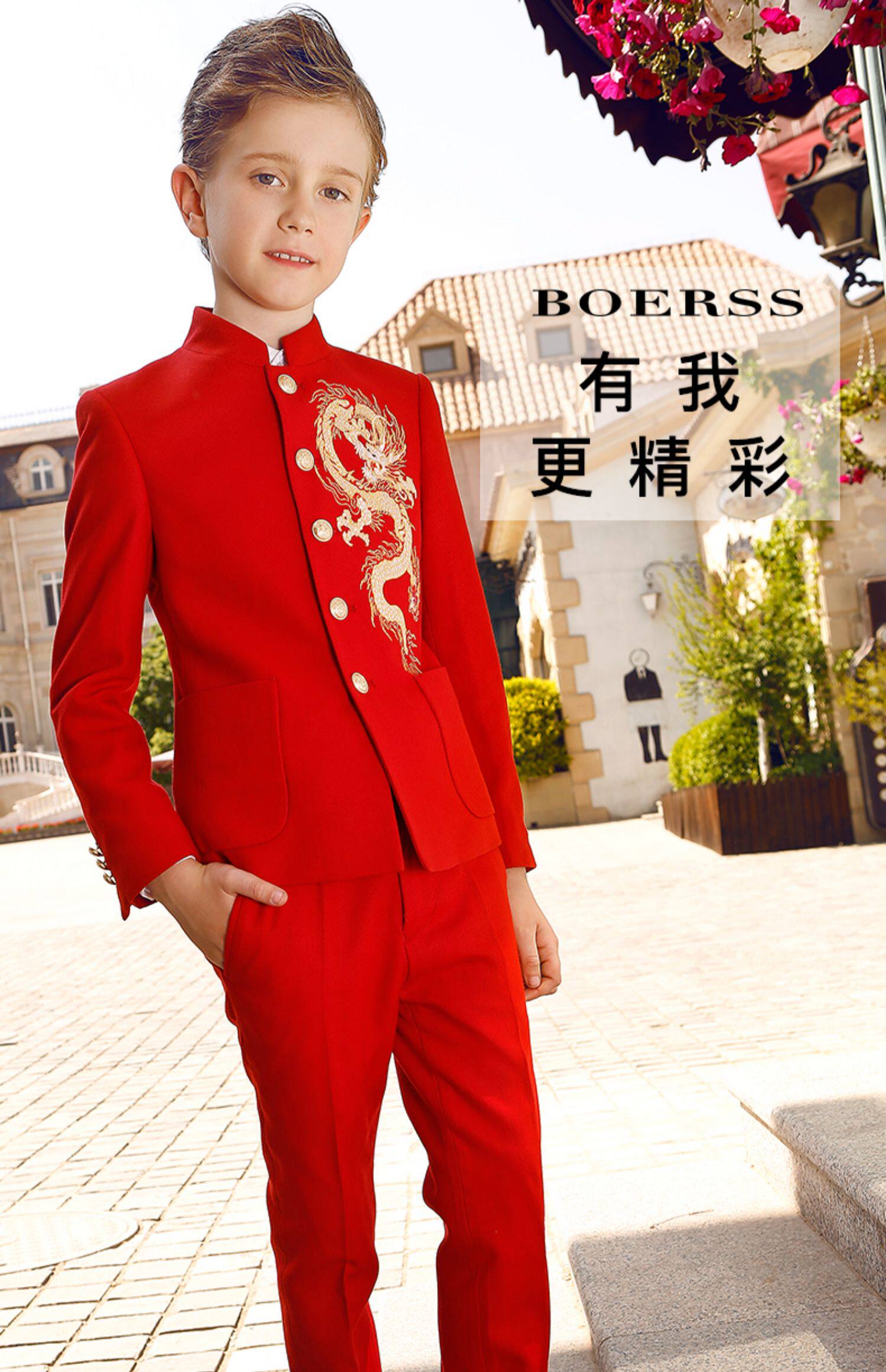 BOERSS Костюм мальчика цветочника, детский классический костюм, легкий роскошный стиль, с вышивкой, китайский стиль