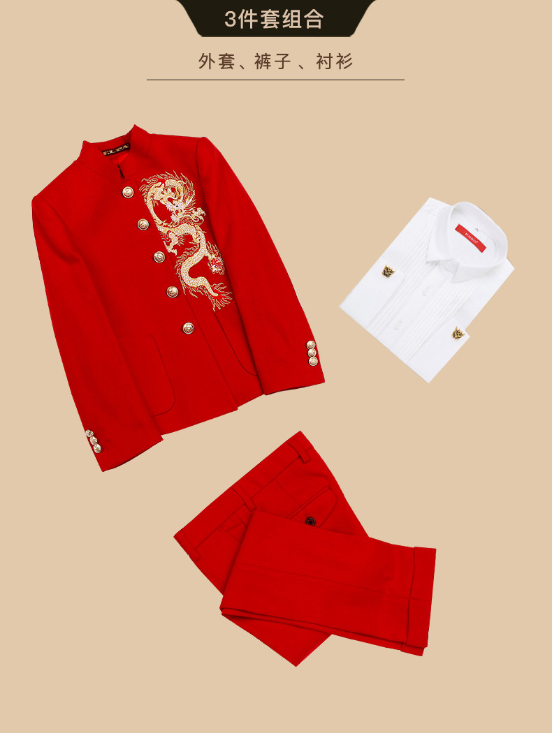 | Цвет: | Красный комплект, штаны, рубашка, 3 шт, Красная вышивка 3 комплекта [Верх (вышитый вышитый дракон+спинку золотой шелк шашлык с кусочками Dragon)+брюки+рубашка] |