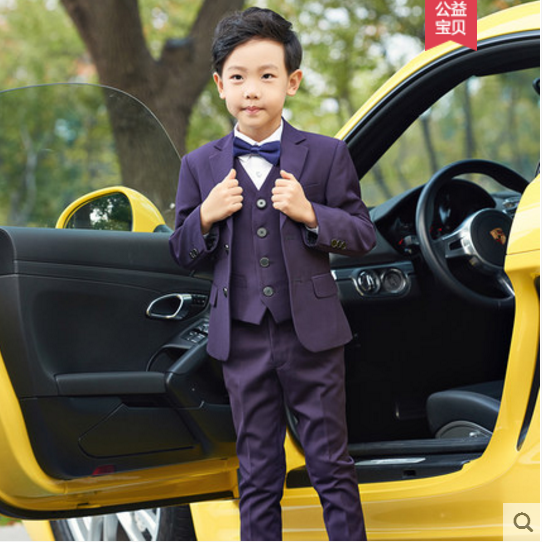 Сиреневый двухрядный классический костюм для мальчиков, платье девочки цветочницы, пианино, наряд для музыкальных выступлений, комплект