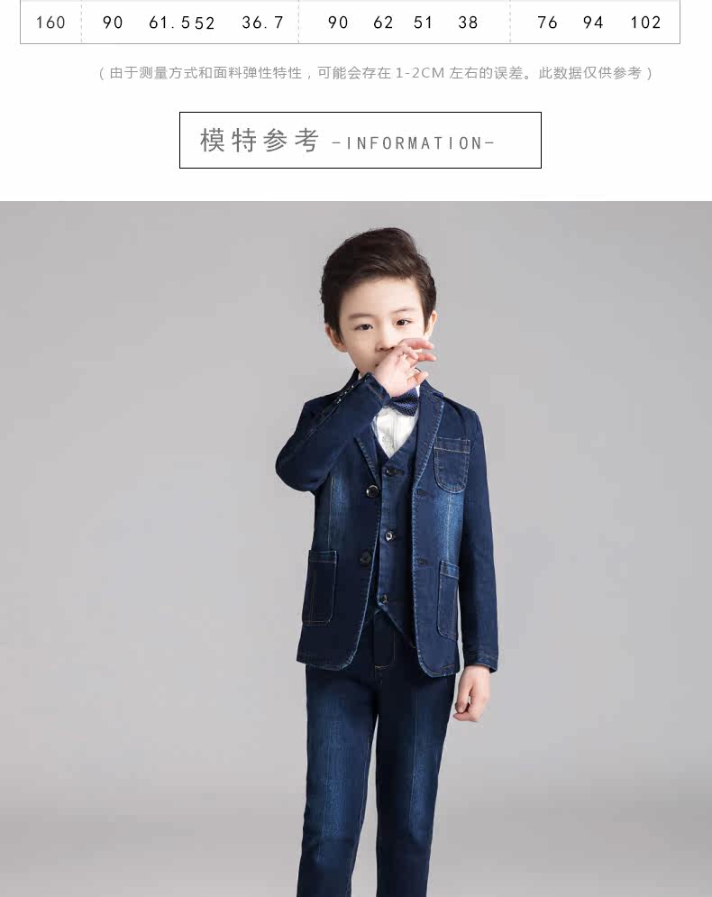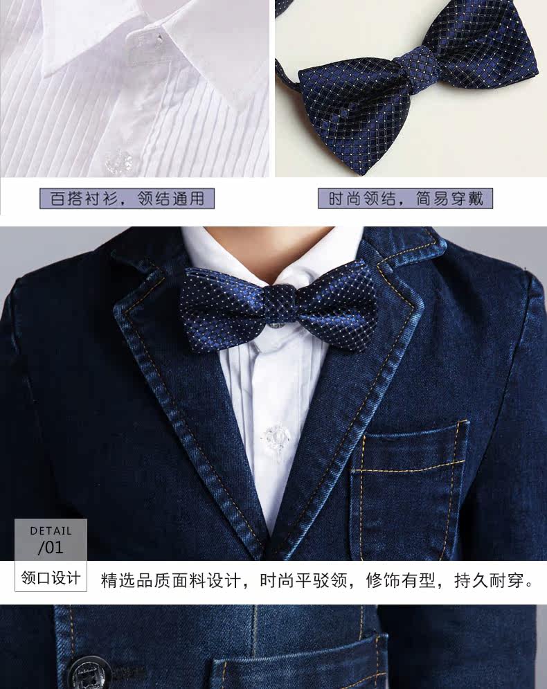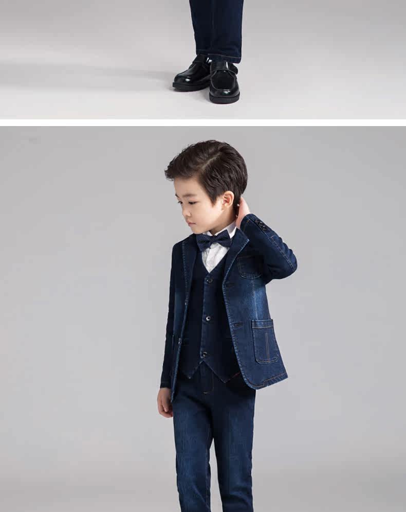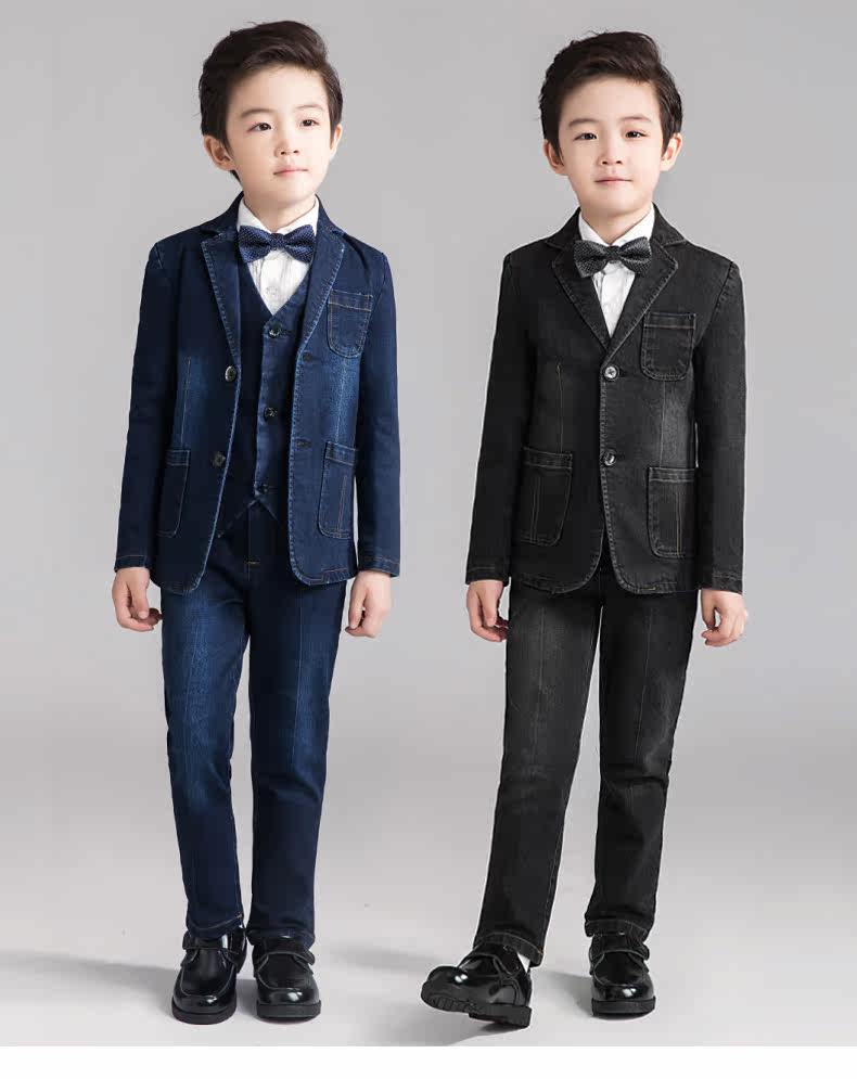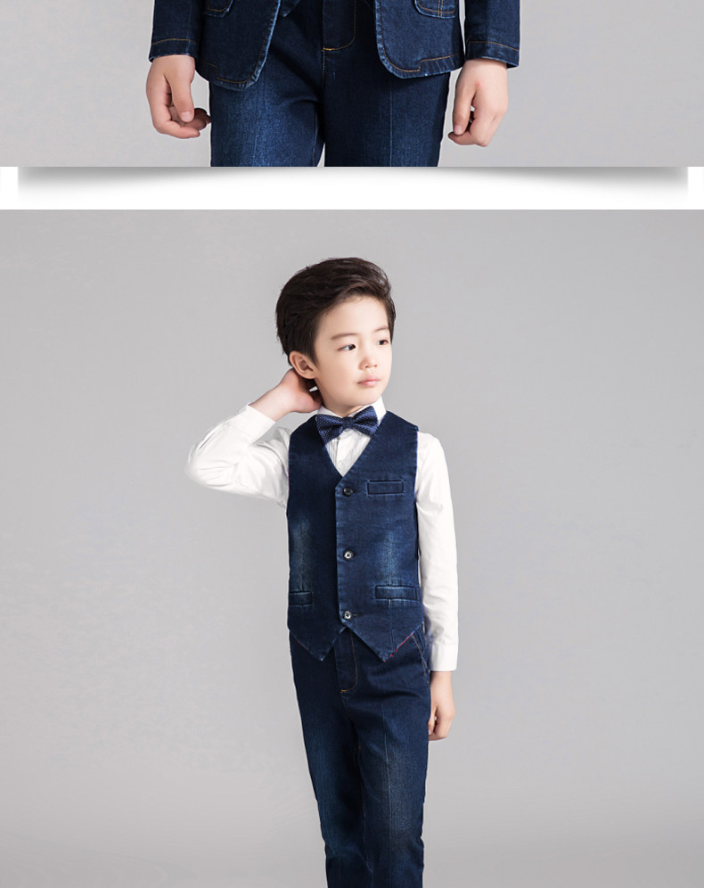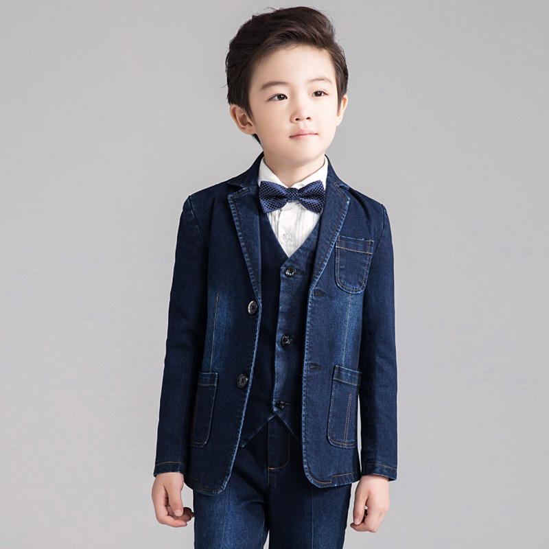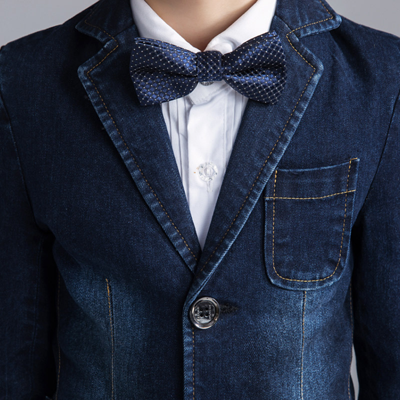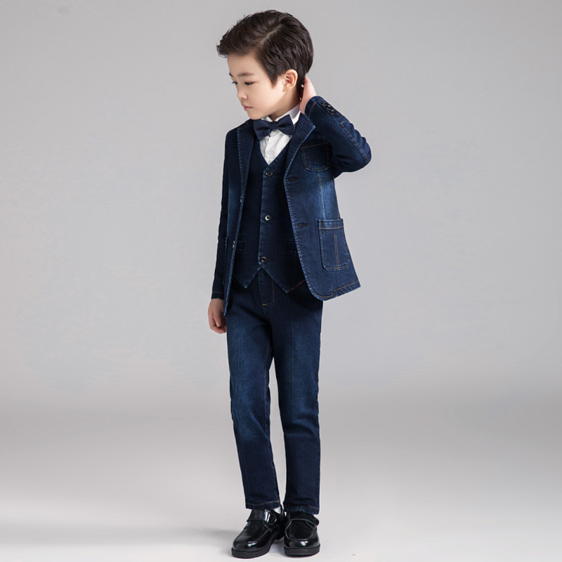 Костюм мальчика цветочника, детский джинсовый классический костюм, куртка, комплект, платье, 3 предмета, подходит для подростков
