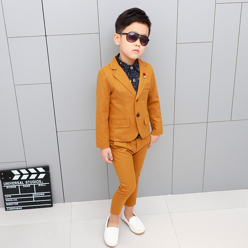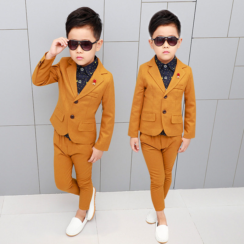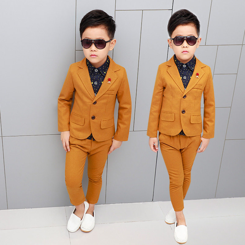 Детский пиджак классического кроя для мальчиков, платье, осенний комплект, костюм мальчика цветочника, в корейском стиле