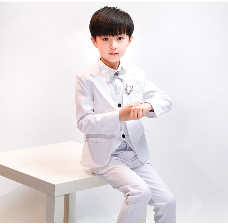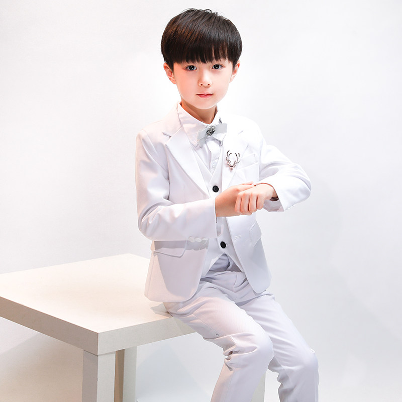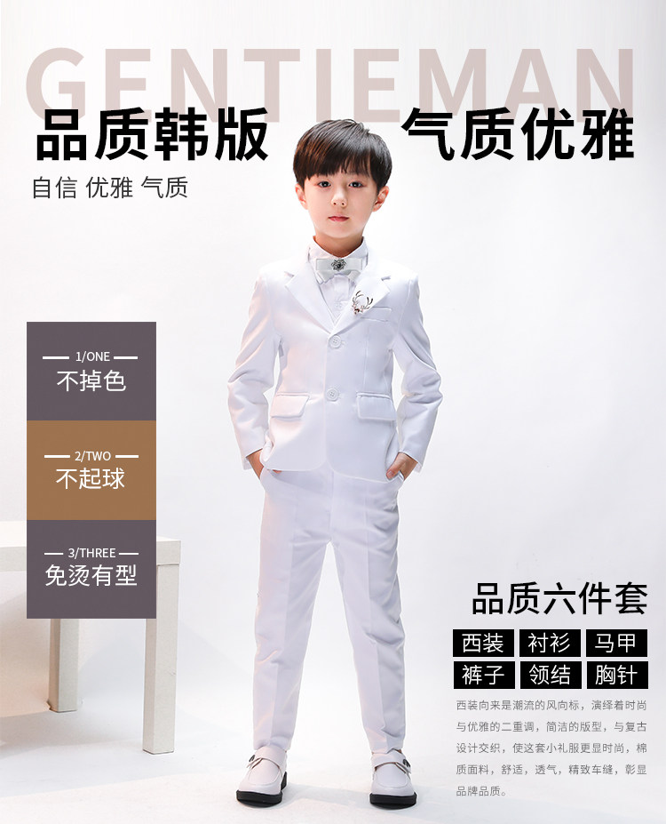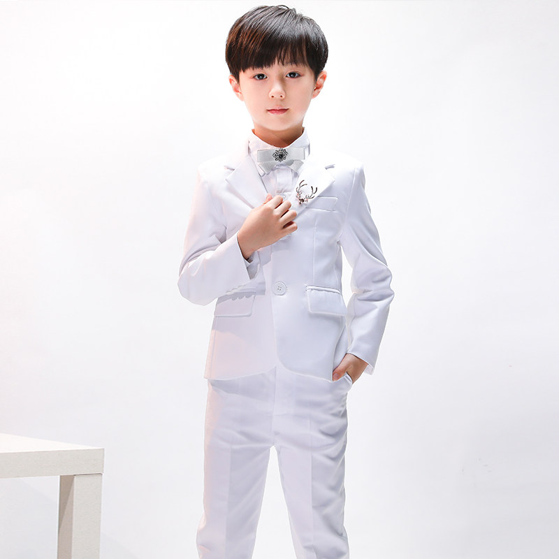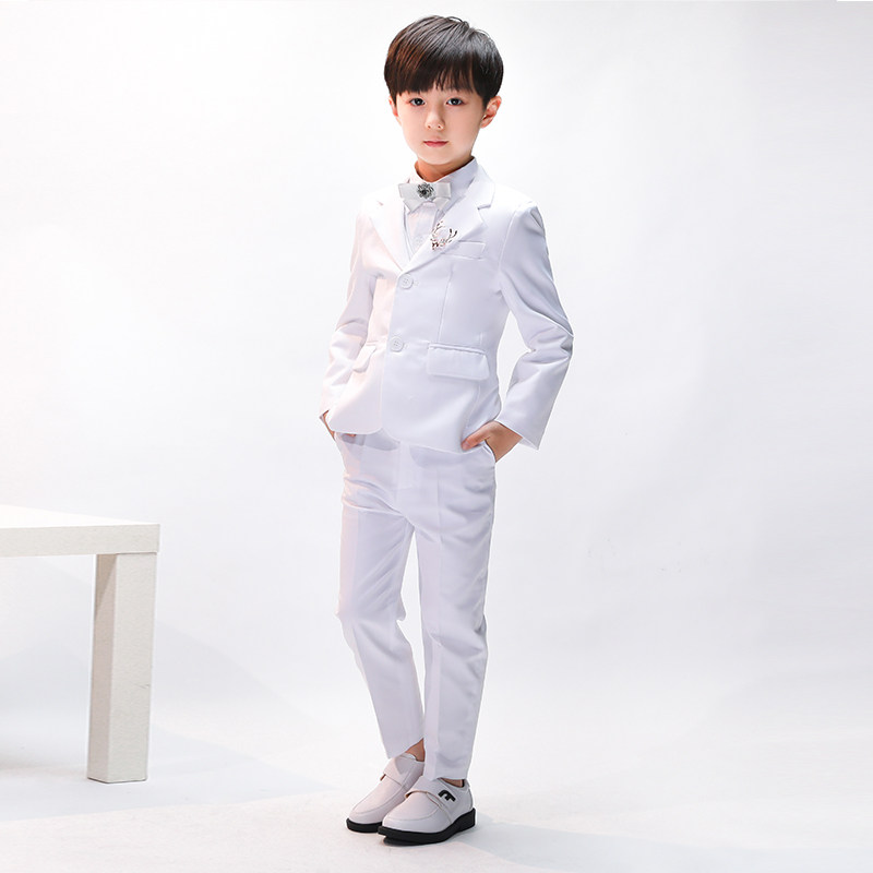 Детский классический костюм, белое платье, пиджак классического кроя, в корейском стиле, облегающий крой
