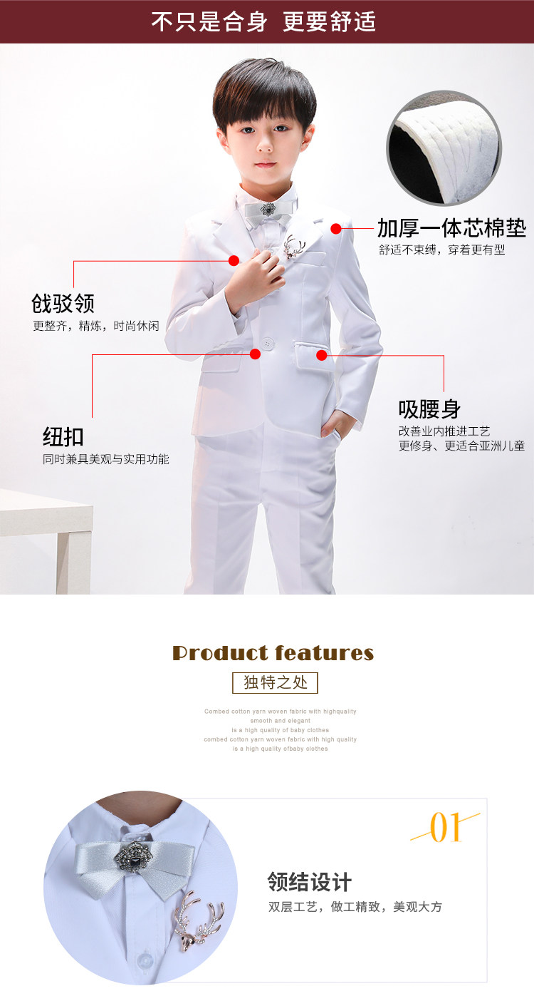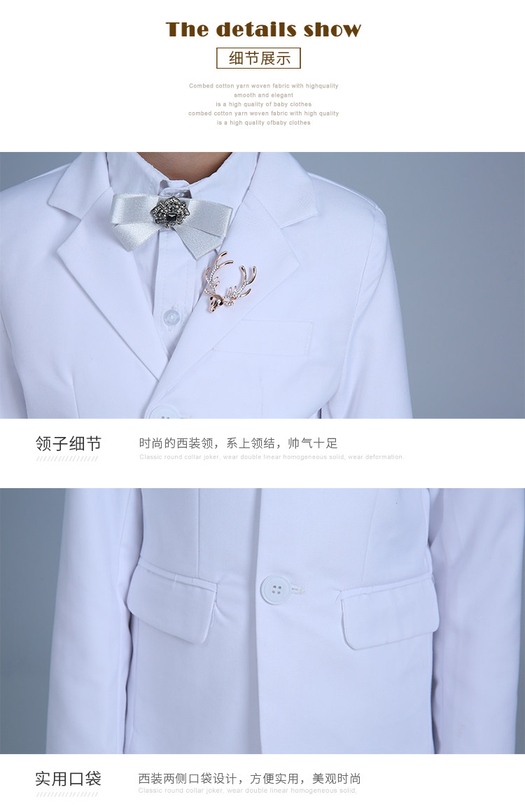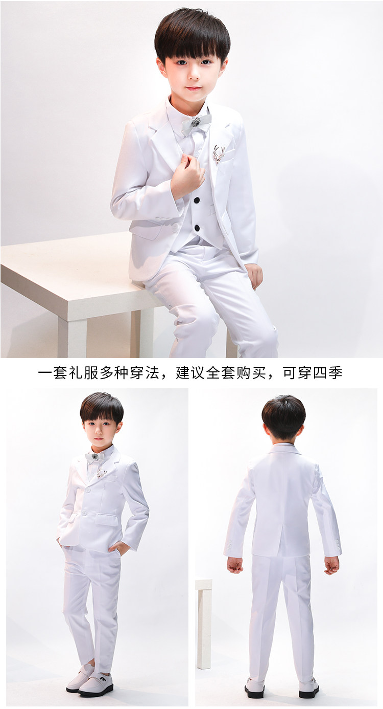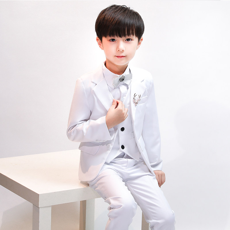 Детский классический костюм, белое платье, пиджак классического кроя, в корейском стиле, облегающий крой