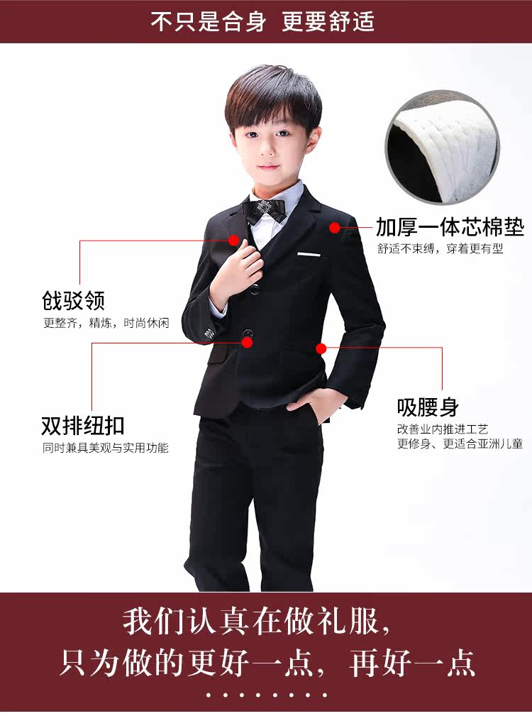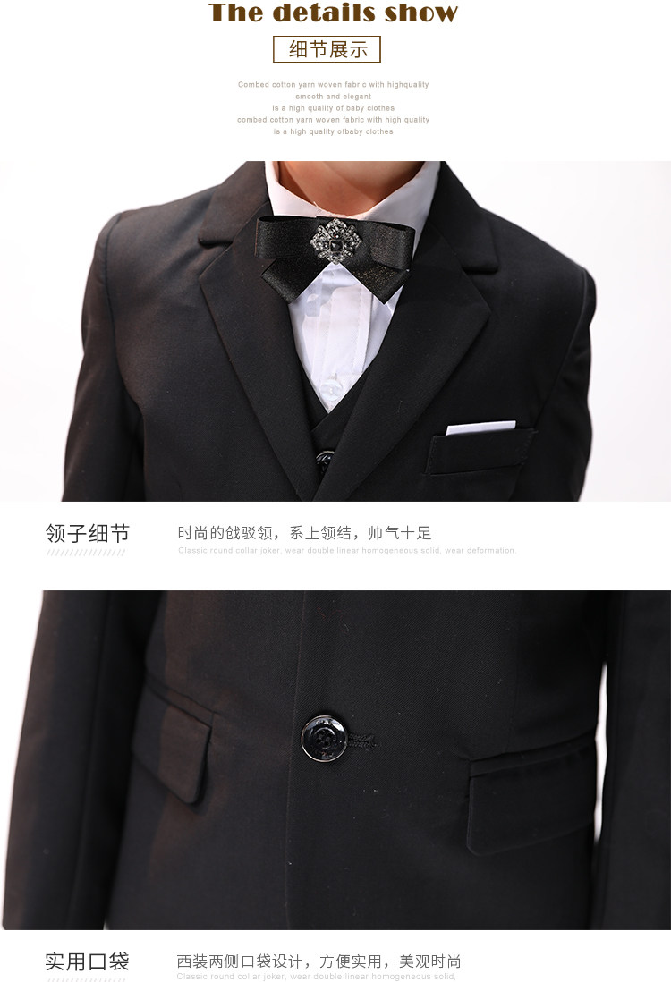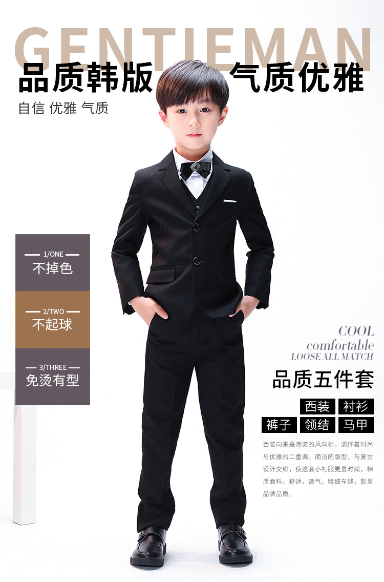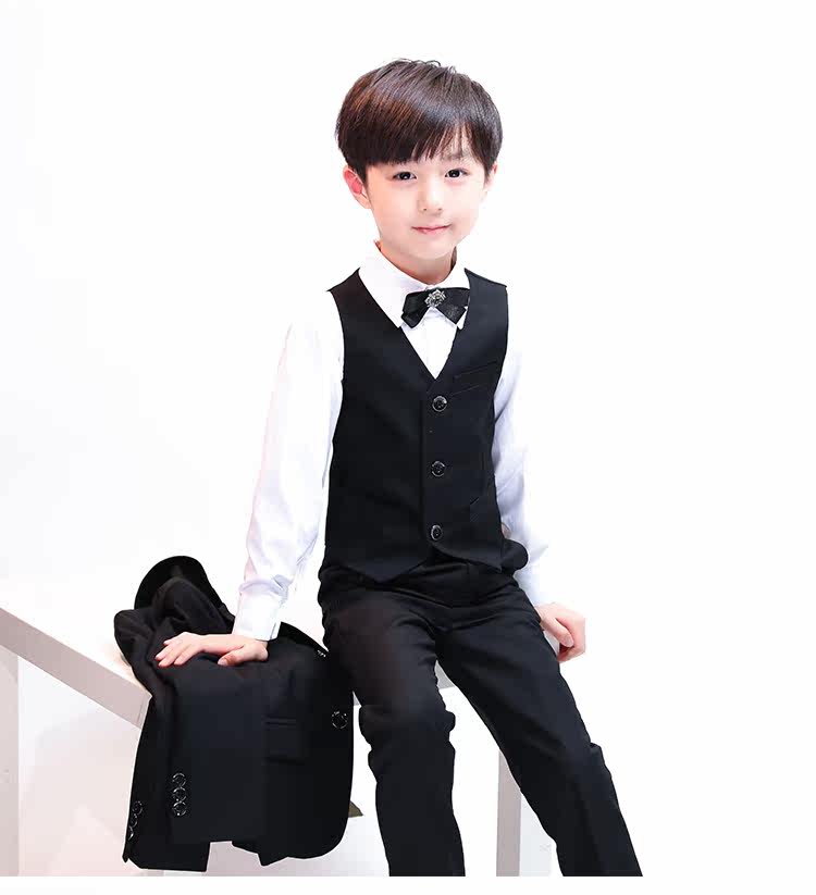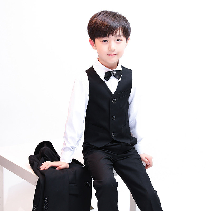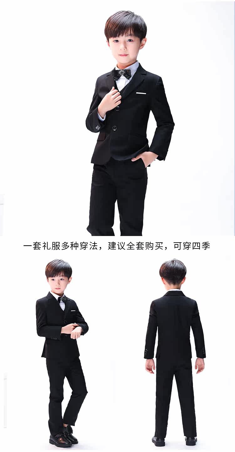 Детский черный классический костюм, платье девочки цветочницы для мальчиков, пианино, манекен головы, в британском стиле, подходит для подростков