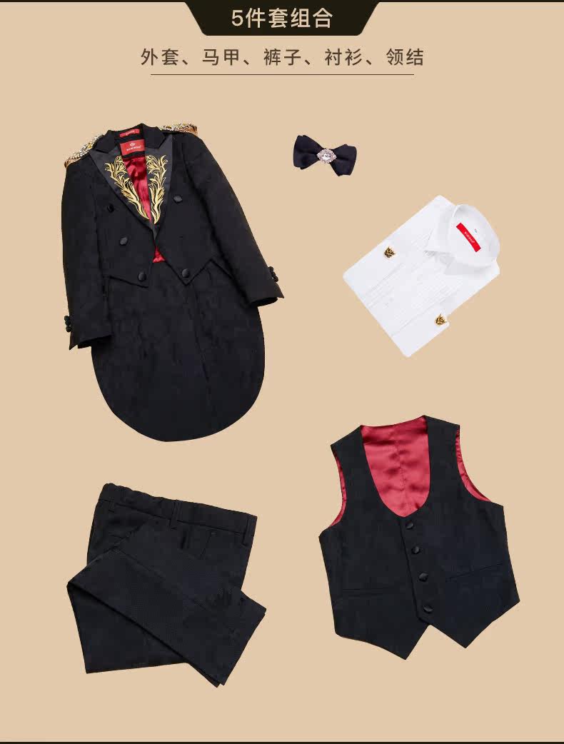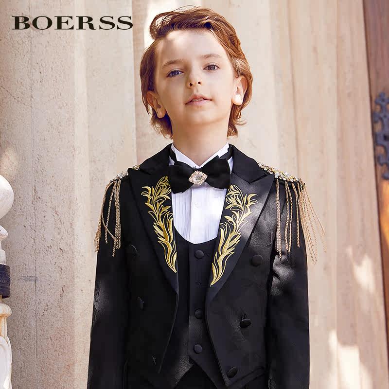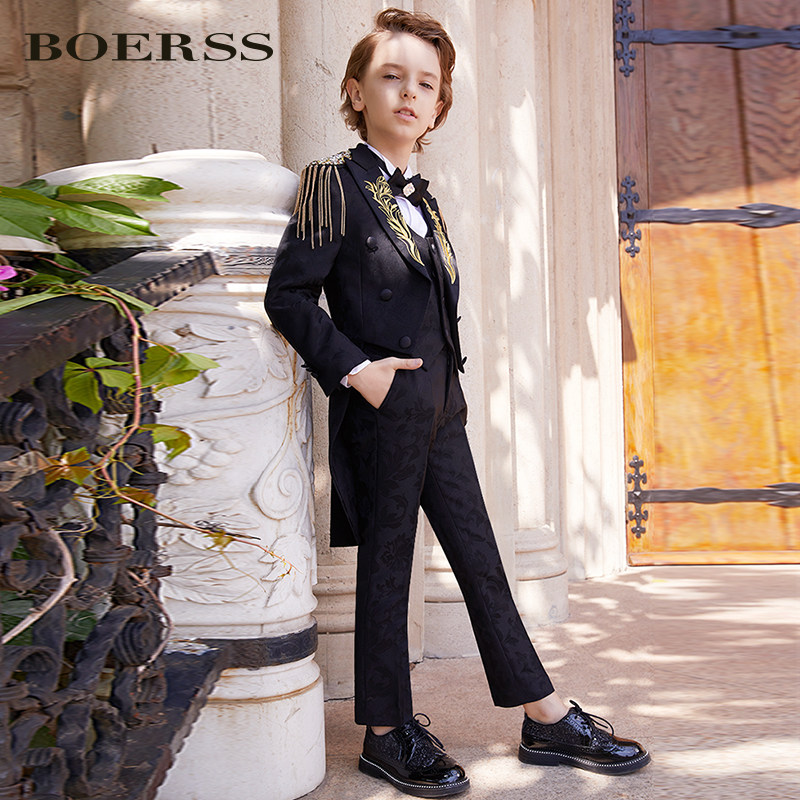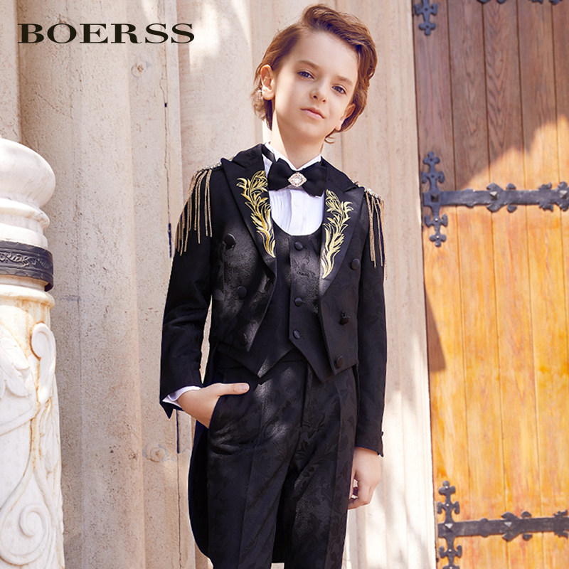 BOERSS Детский классический костюм, пиджак классического кроя, костюм мальчика цветочника, наряд для музыкальных выступлений