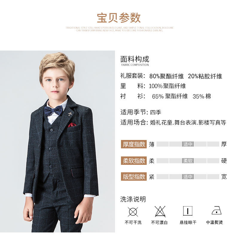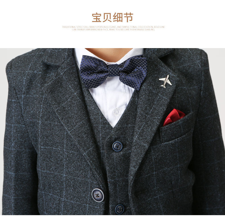 Детский классический костюм для мальчиков, комплект, платье, 3 предмета, подходит для подростков